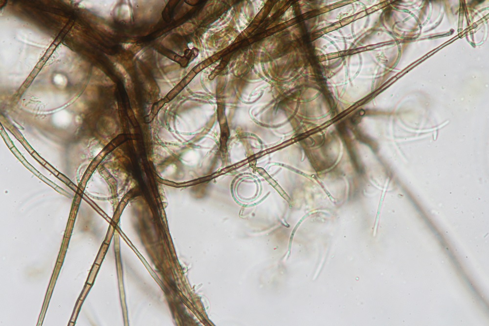 Dann bin ich auf die H. rodmanii gestoßen und konnte mich damit anfreunden, bis ich auf dem Makrofoto gesehen habe, das sich Rhizomorphe bei den Frk. befinden.