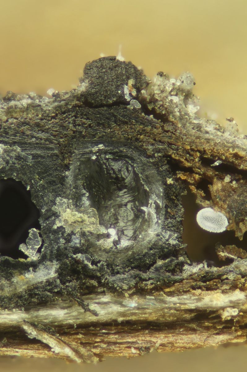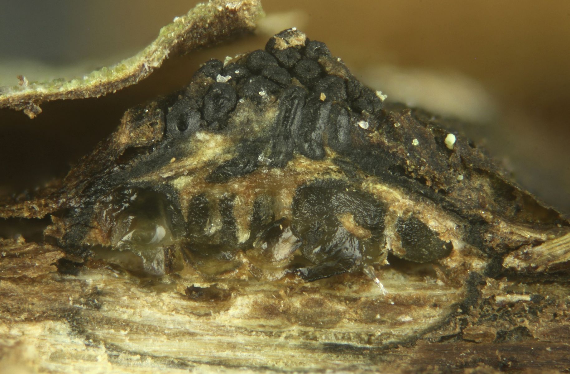 Der Fundort war ein liegender Ast (Fagus) von einem Buchenwald.