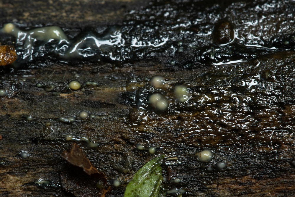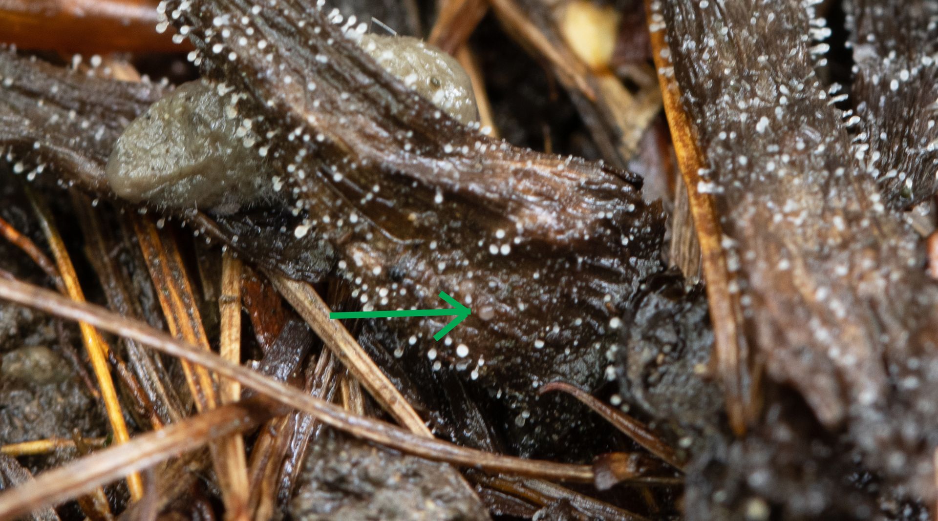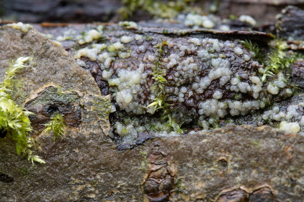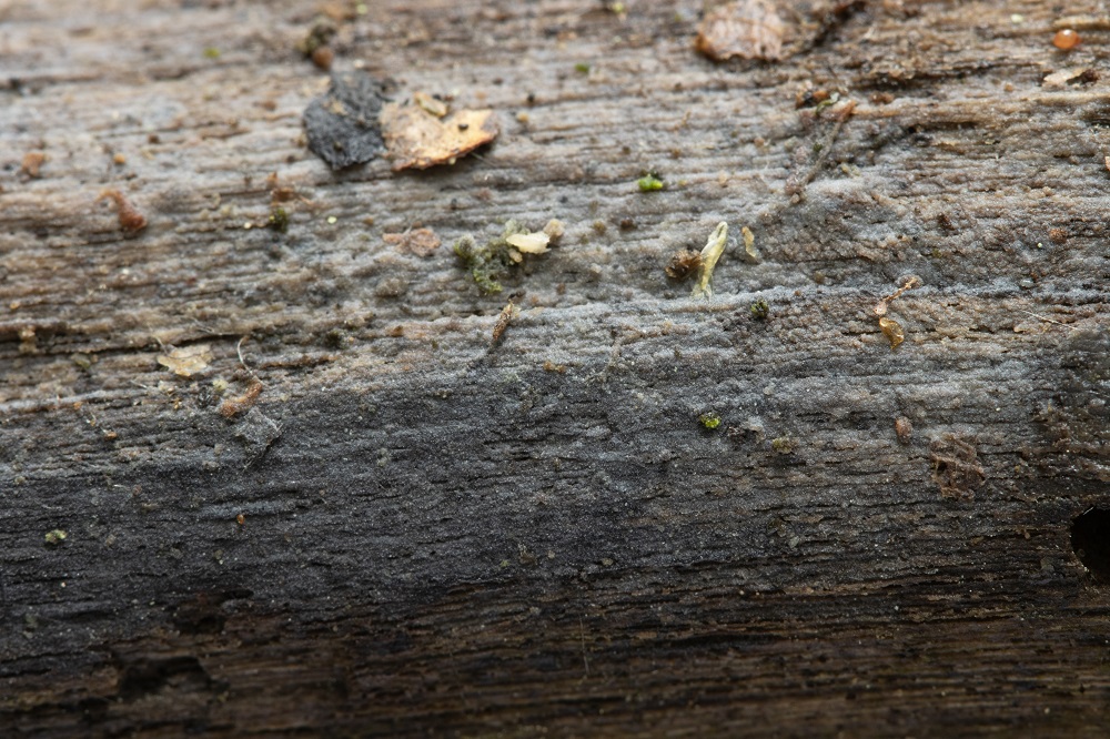 Jetzt sind mir zwischen der Synnemata, kleine weiße Becher aufgefallen, die sich als ein Ascomycet herausgestellt hat.