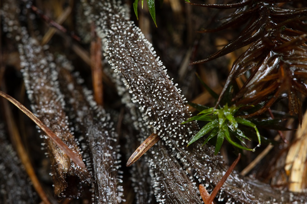 Es handelt sich hierbei, um eine Anamorphe die Synnemata auf vermutlich abgestorbenen Pilzen (Leotia ?) wächst.