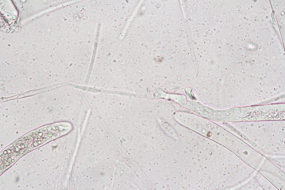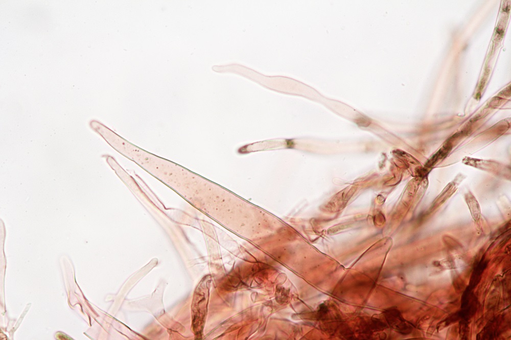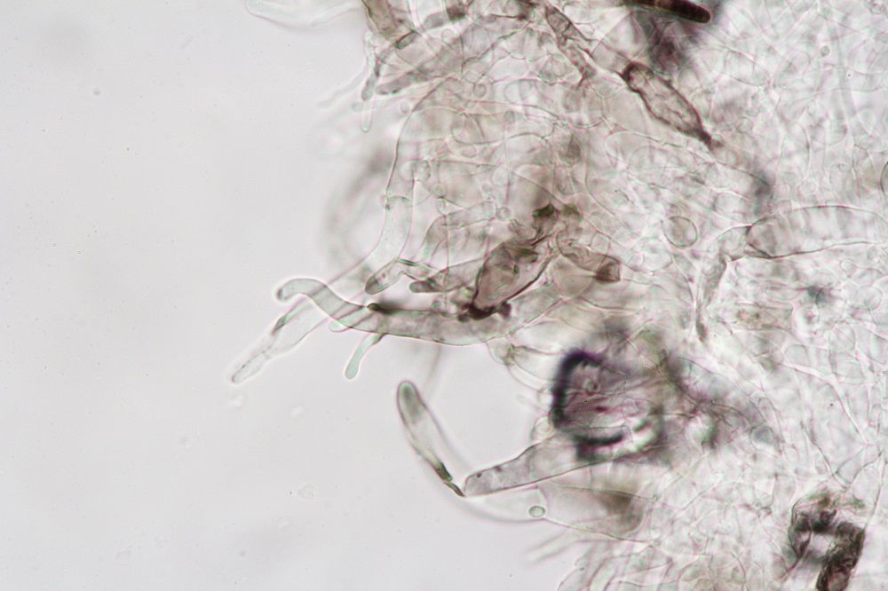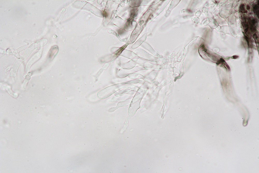 Es steht fest, dass es Ionopeziza gerardii (oder I. ionella oder Peziza gerardii) Aufsammlungen mit und ohne Haken gibt und das es verschiedene Arten sind.