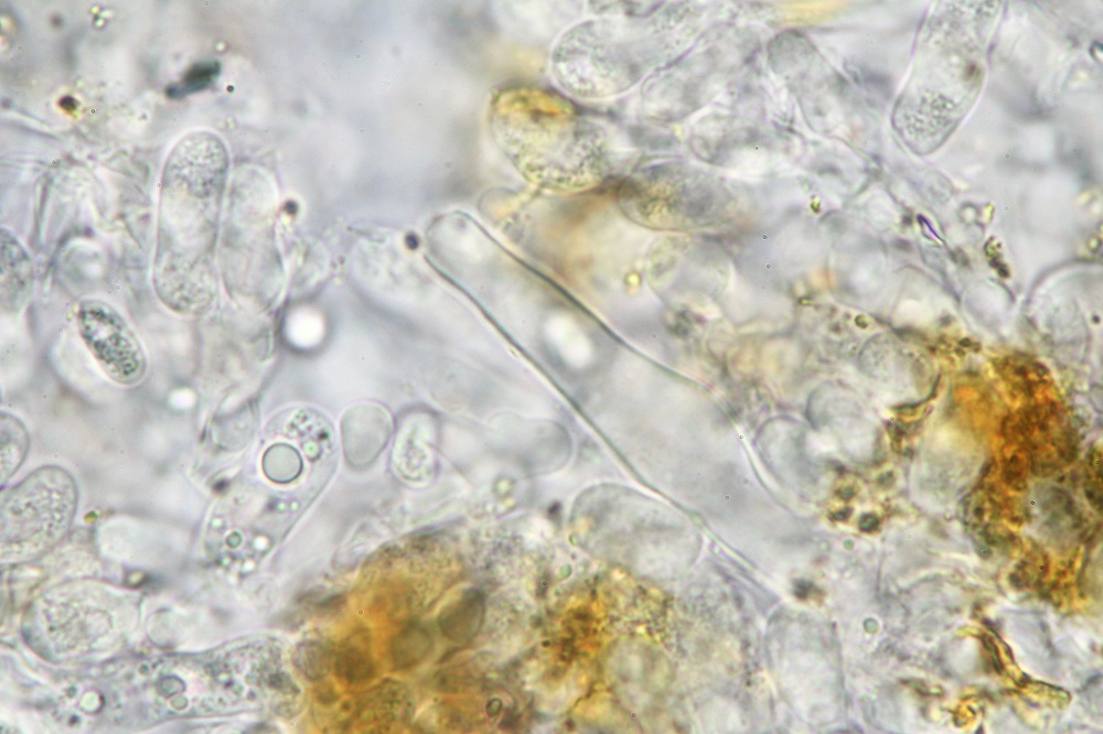 Mikroskopisch gesehen ist diese Art langweilig, denn es gibt keine Zystiden, aber Suchen muss man sie leider trotzdem ![]()