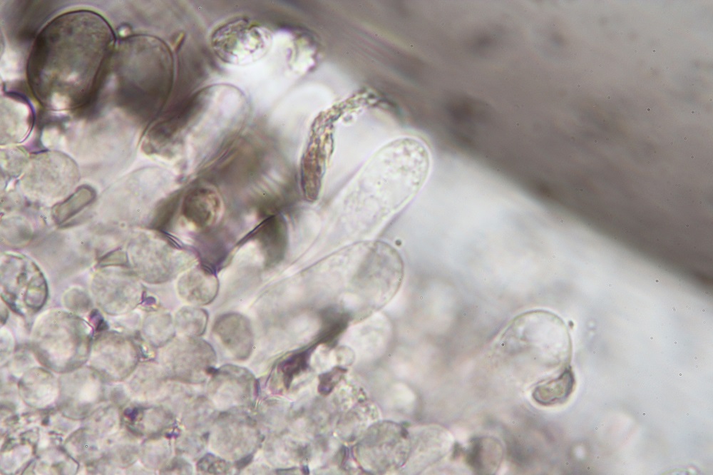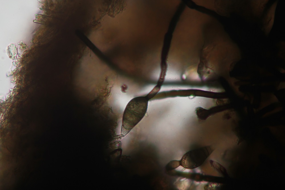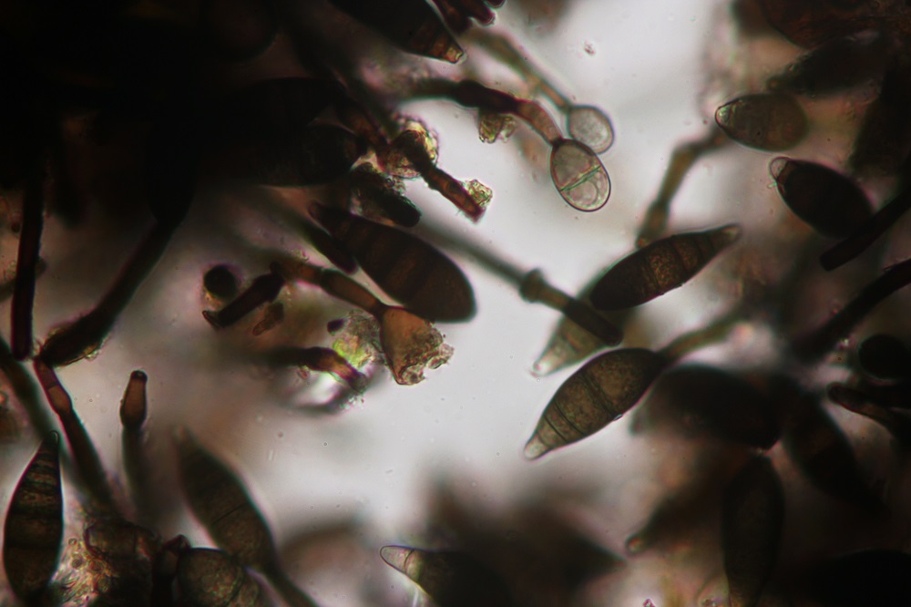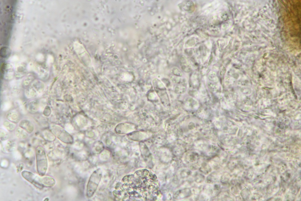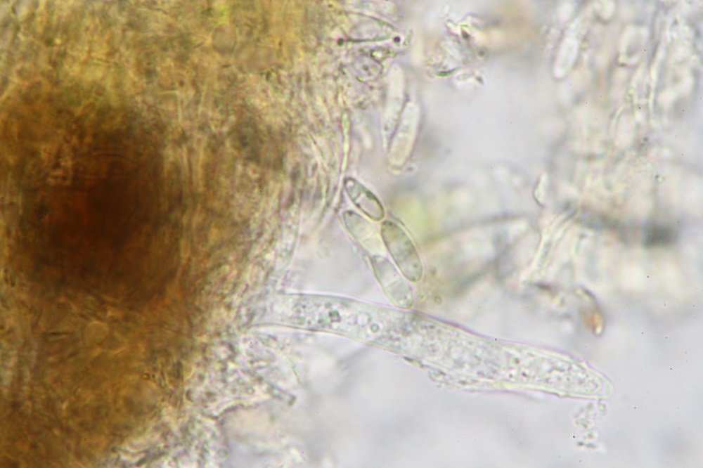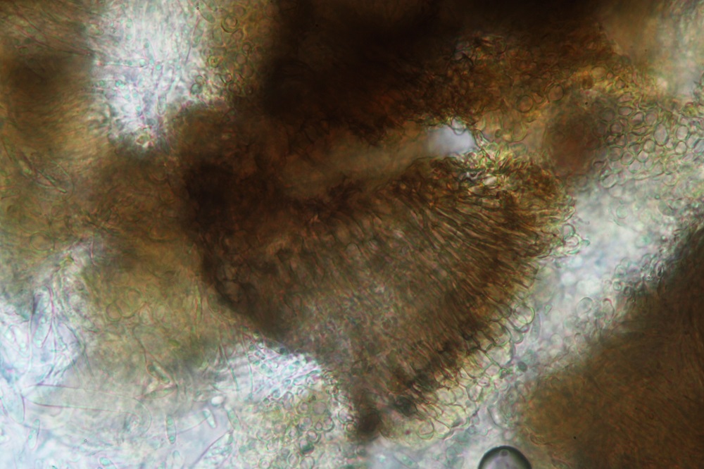 Mikroskopisch gesehen muss man sich die Haare anschauen, Sporen und Basidien.