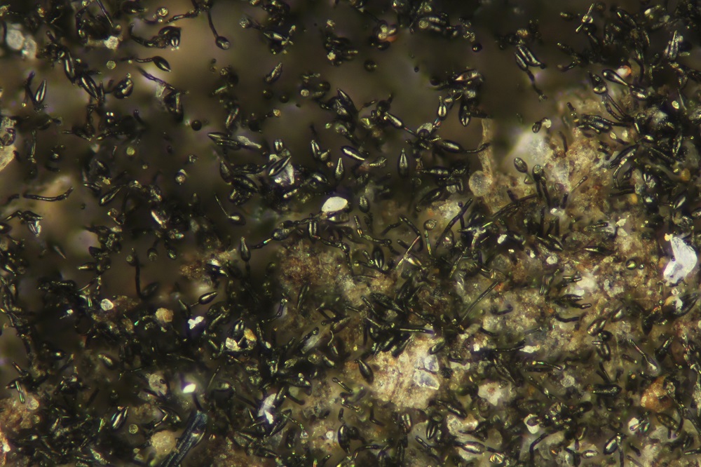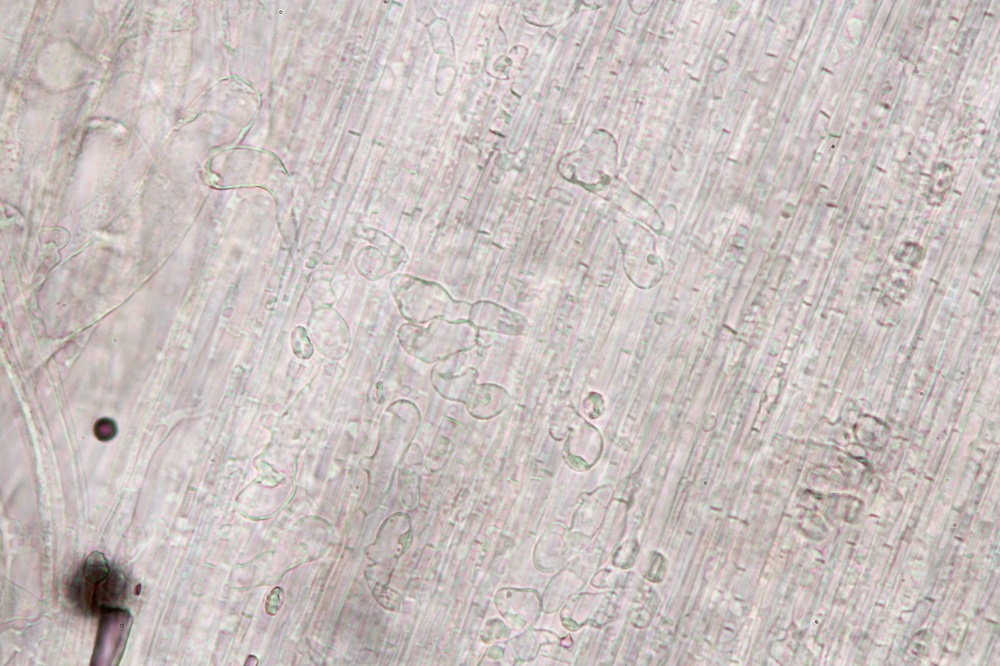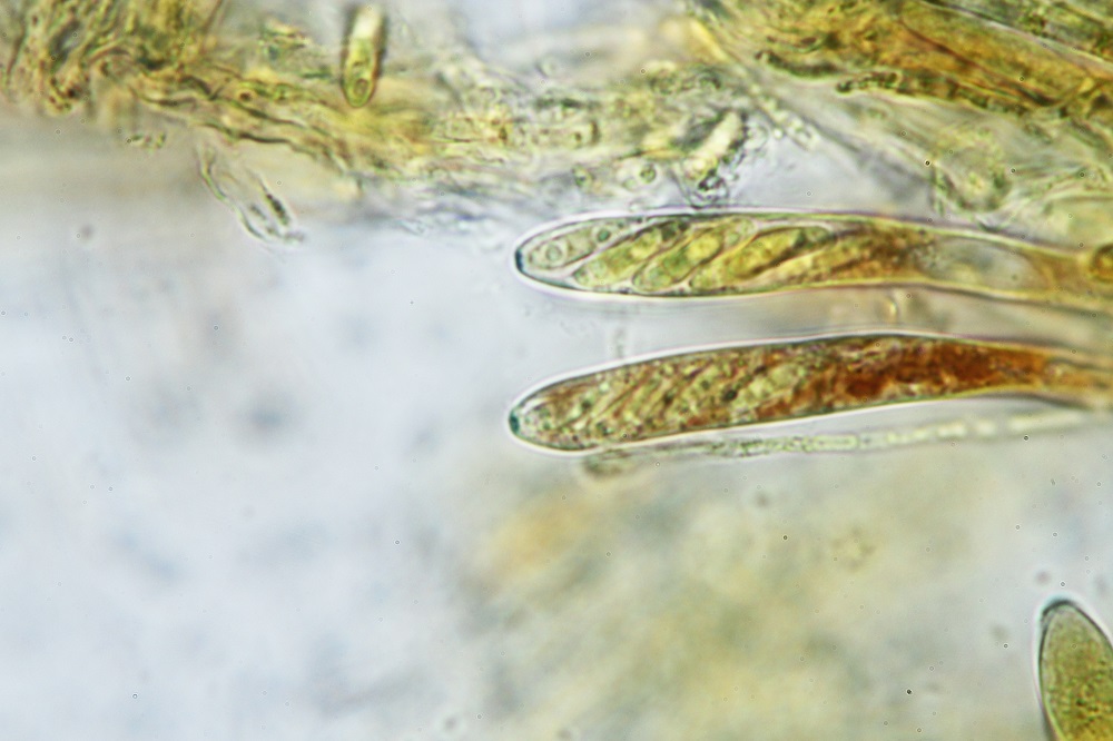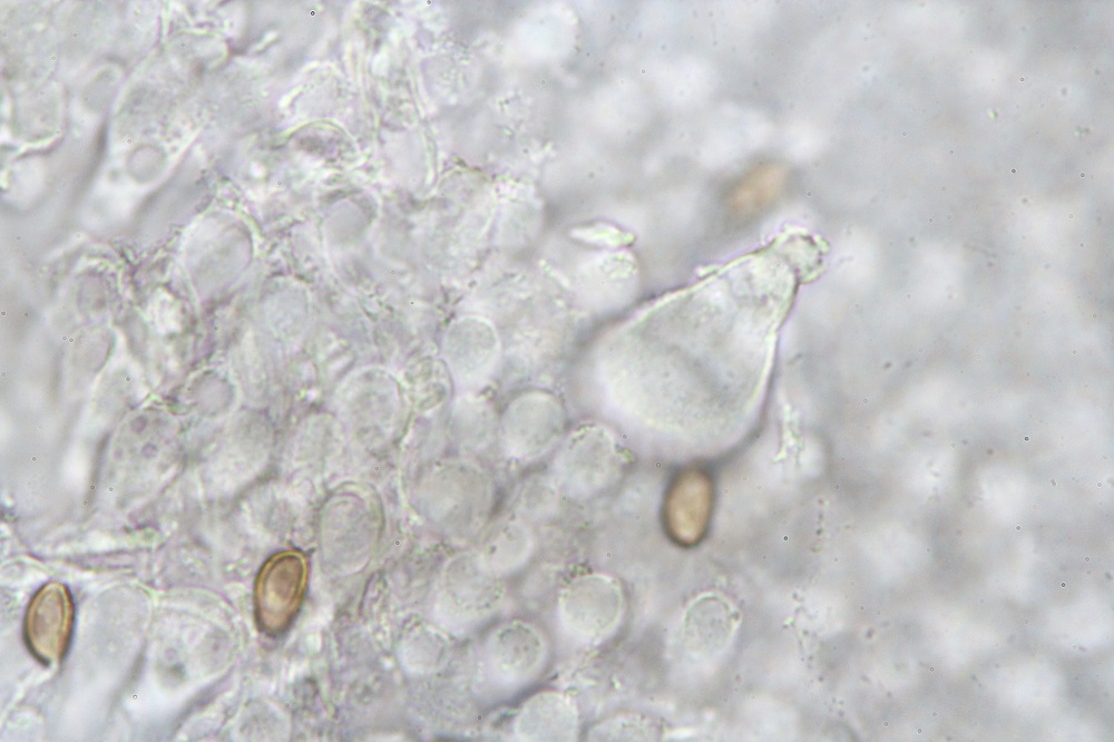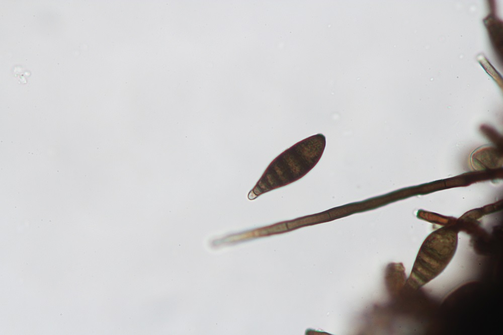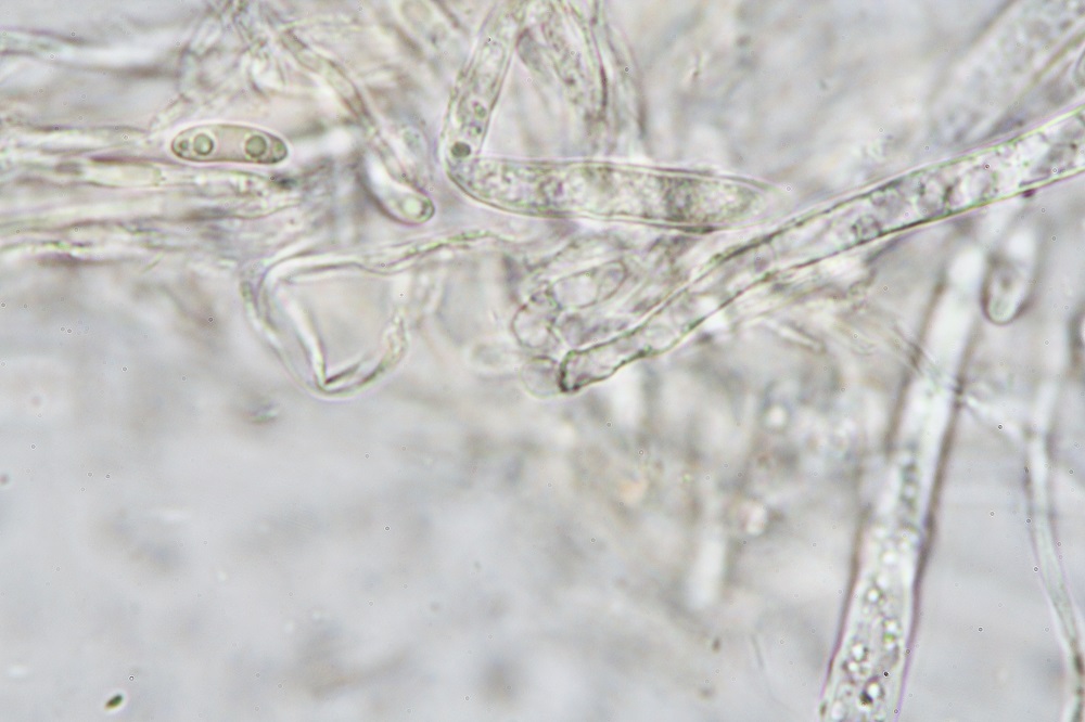 Mikroskopisch gesehen muss man sich die Haare anschauen, Sporen und Basidien.