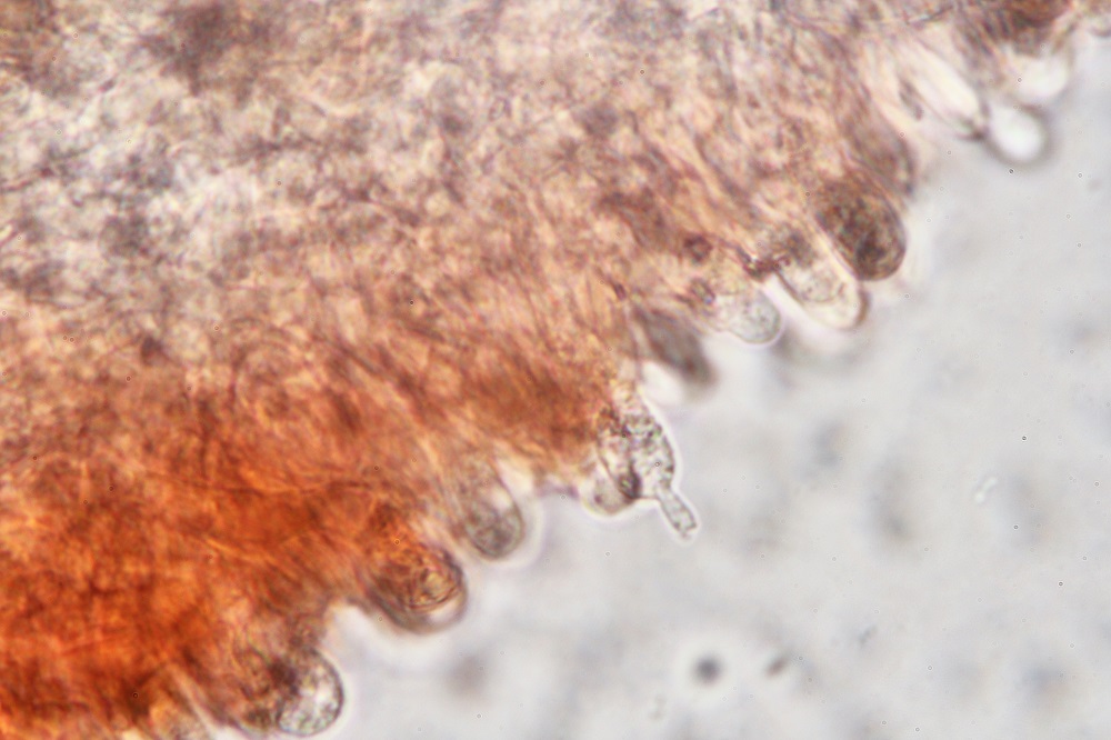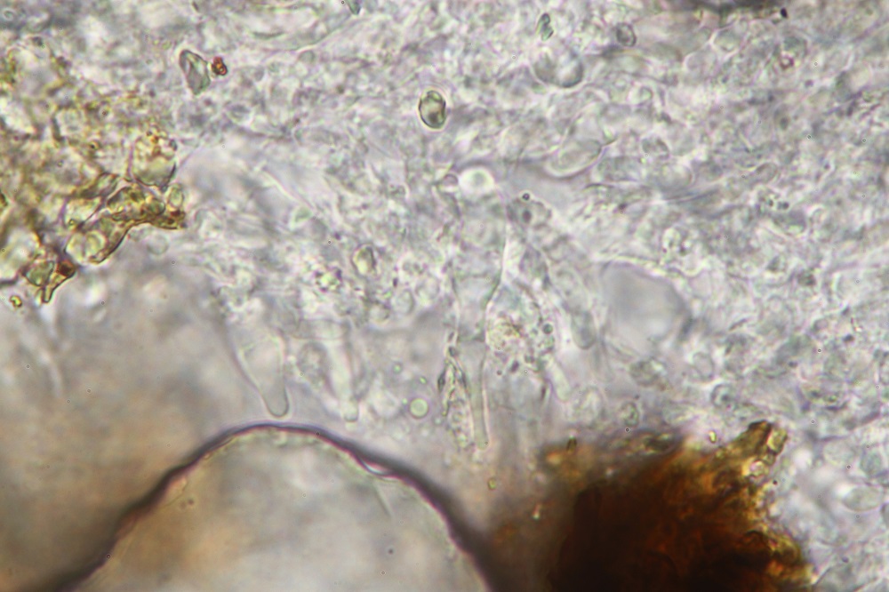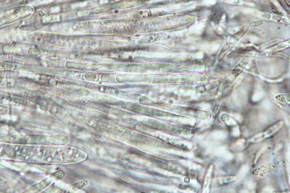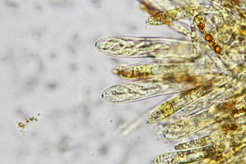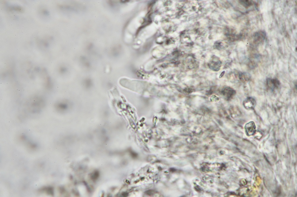 im Reifen Zustand findet man so welche Gebilde. Wer glaubt das sind Sporen der irrt sich, denn das sind Zystiden