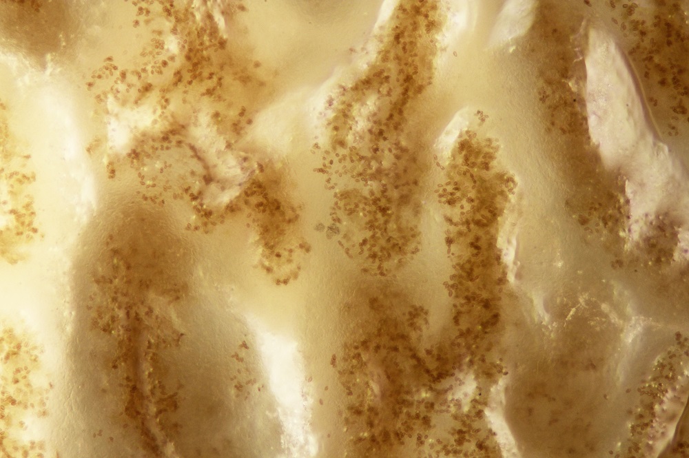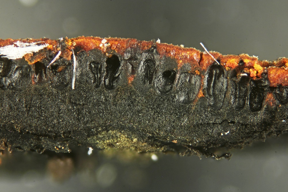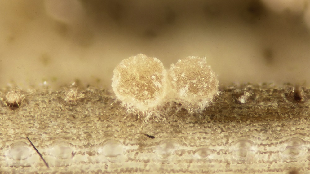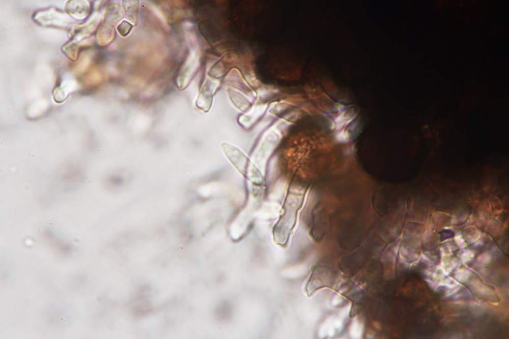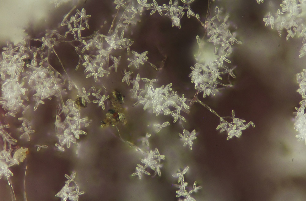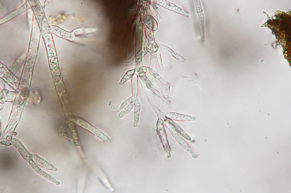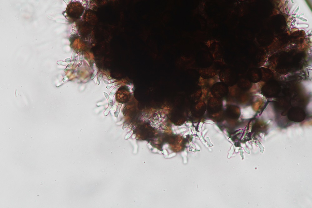 Als ich nach 8 Tagen neues Material entnommen habe, sah das ganze viel besser aus. Es gab Massenweise Sporen und man konnte einige reife Phragmobasidien finden.