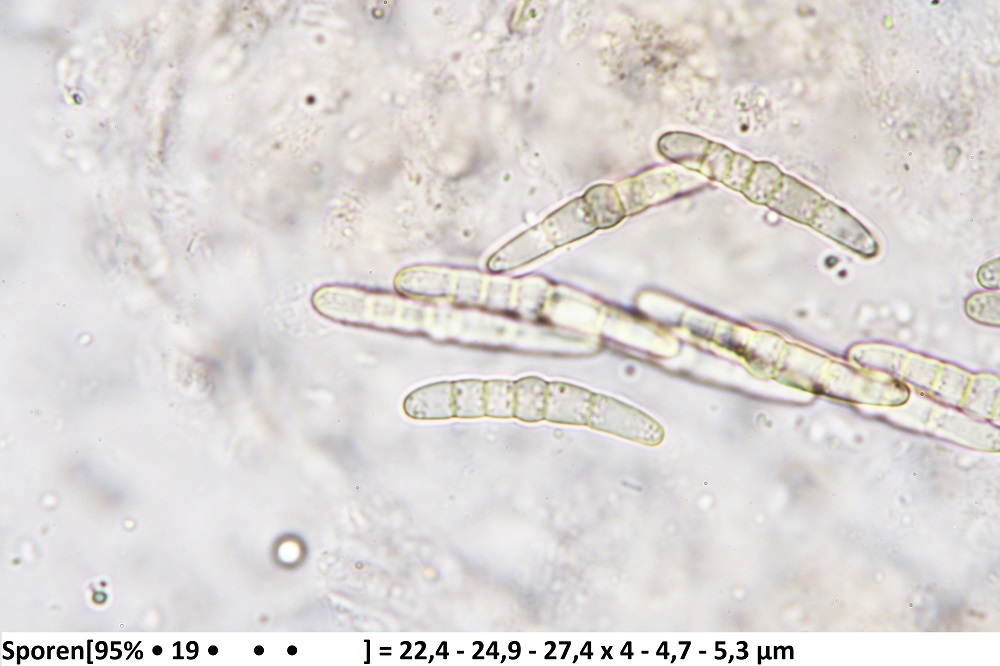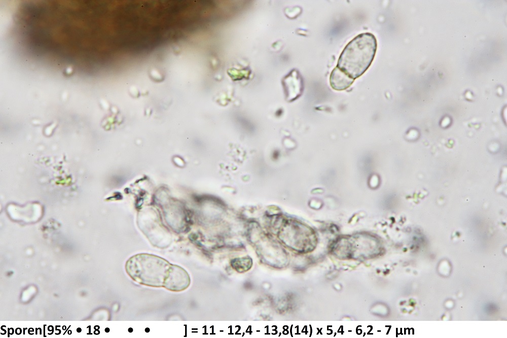 4. Sporen 11,5-12 x 4,5 Mikrometer (Allerdings wurden nur 4 Sporen gemessen)