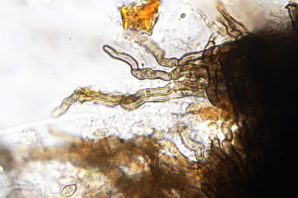 Dann müssten in den hymenialen Hyphen die Shcnallen fehlen und nur an den basalen vorhanden sein.