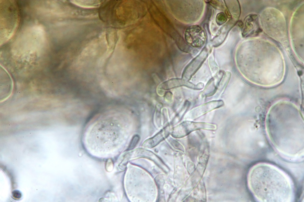 Am wichtigsten sind die Sporen, die du dann auch abbilden müsstest. Dann ist es wichtig, dass du Sporen misst und das freie Sporen, also am besten welche die außerhalb der Asci schwimmen. Es gibt 2 Möglichkeiten, um Sporen zu messen. Du kannst entweder ein Sporenabwurfpräparat machen, dann hast du nur reife Sporen oder du misst die Sporen im Quetschpräparat, wohingegen auch unreife Sporen sein könnten.