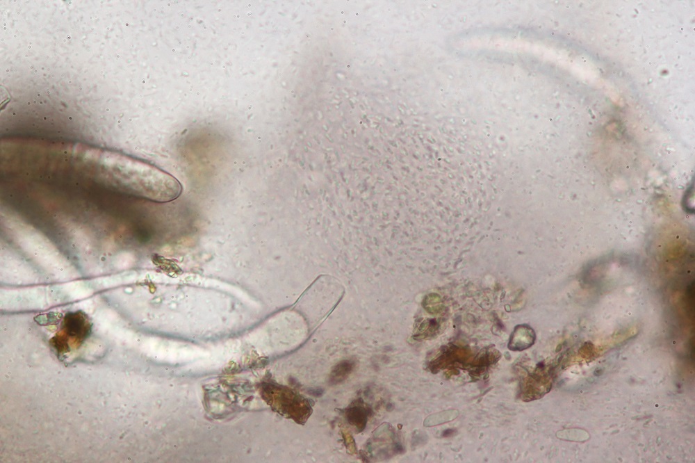 Eventuell Didymium difforme. Bei mir waren in Didymium difforme Aufsammlungen diese Sporen dabei wie bei Bild Nr.5 hier.