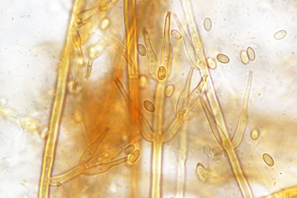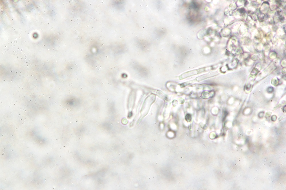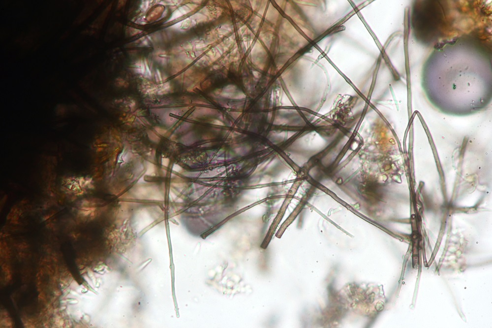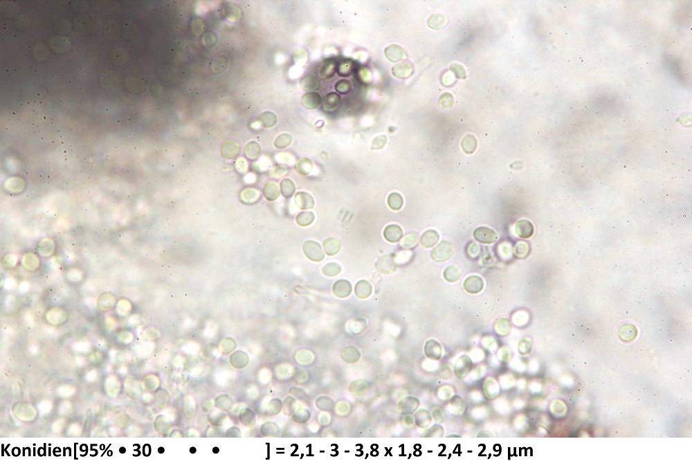Die stark gebogenen Konidienträger und die runden Sporen sind schon sehr auffallend.