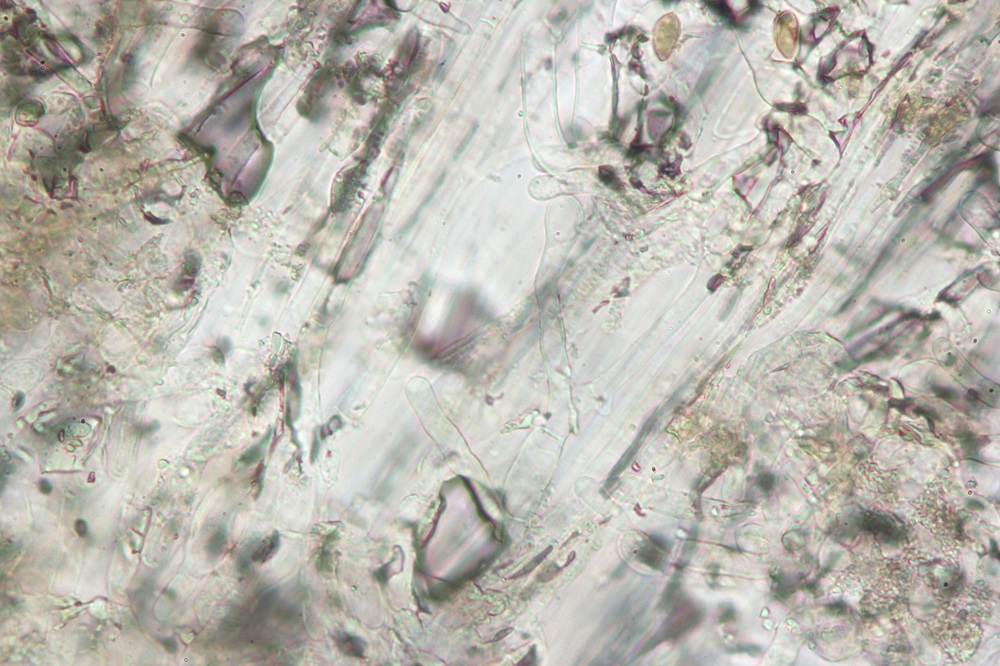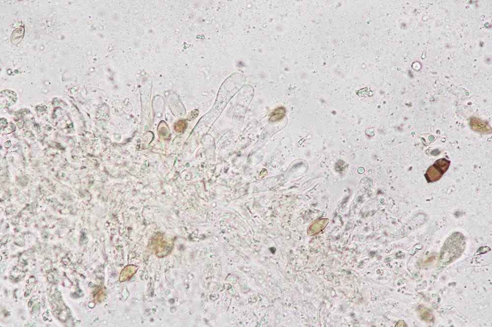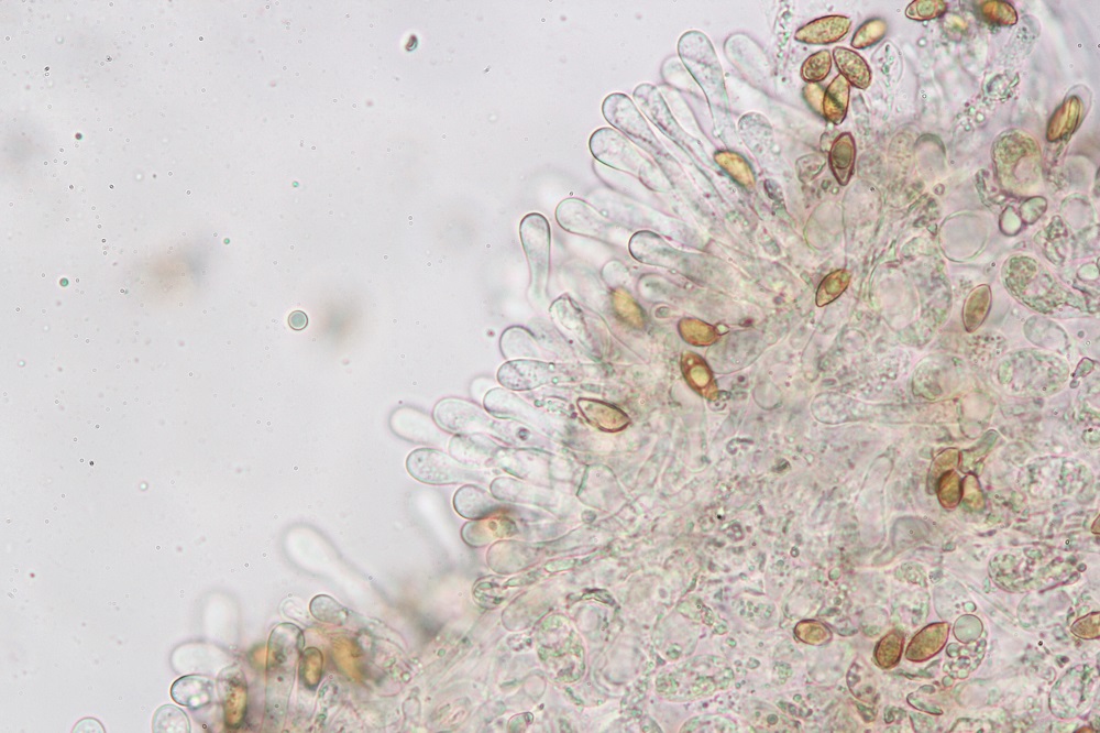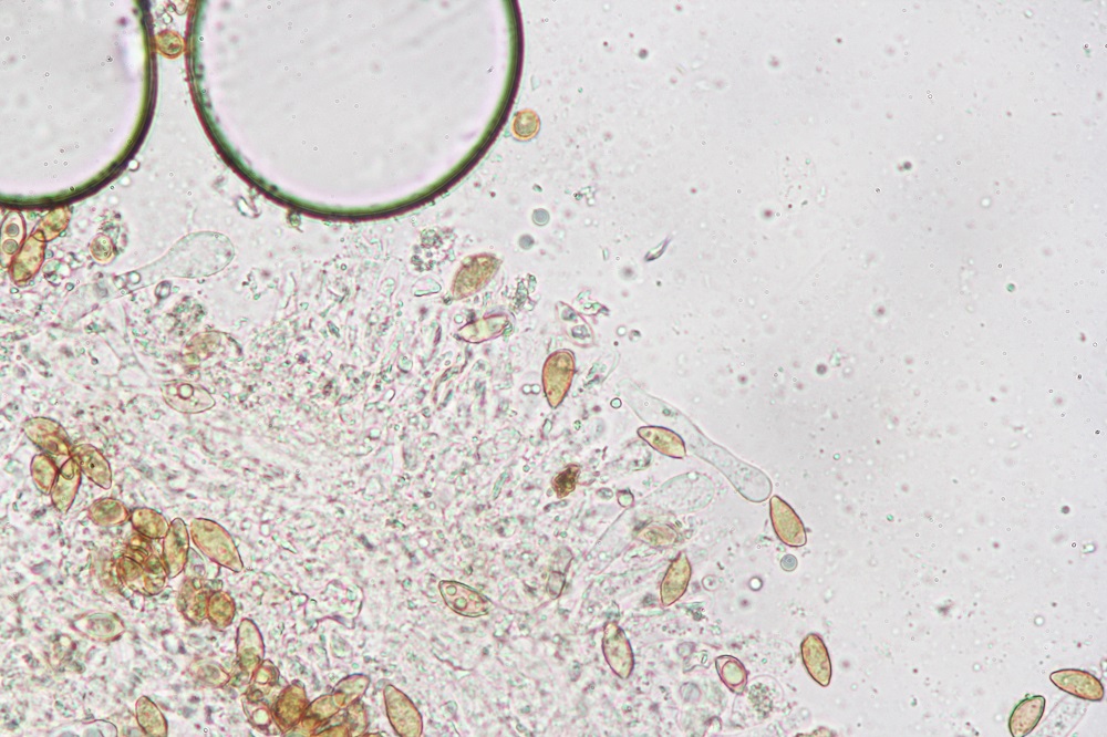 Eigentlich sind die Sporen glatt, zumindest konnte ich unter dem Mikroskop kein Ornament erkennen.