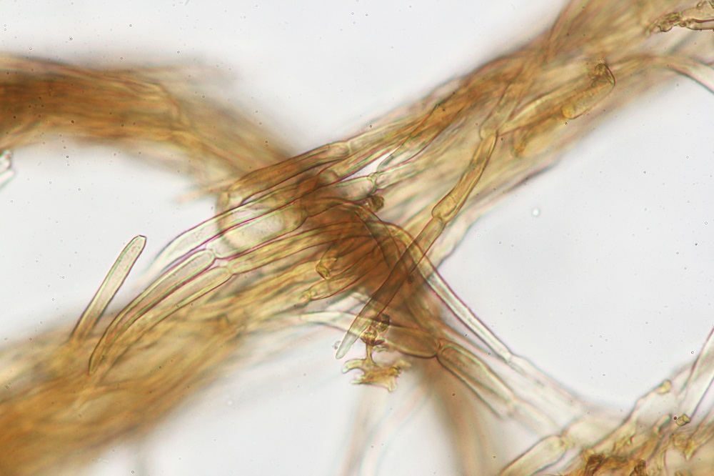 Die Sporen sind inamyloid, Basidien 4-Sporig und die HDS hat Schnallen.