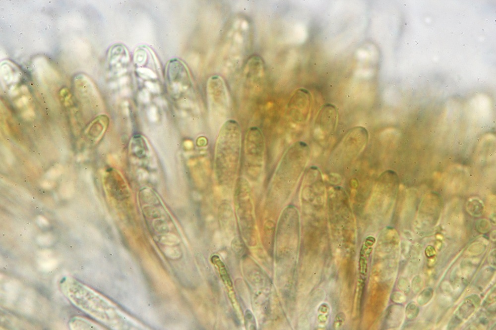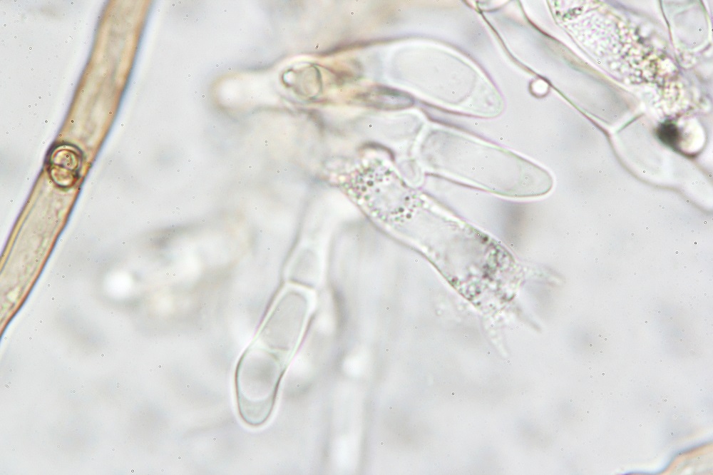 Leider habe ich in der schnelle nur eine Hakenlosen Ascus fotografiert, dann gelesen das Haken auch vorhanden sein sollen, was ich jetzt weder bestätigen oder verneinen kann.