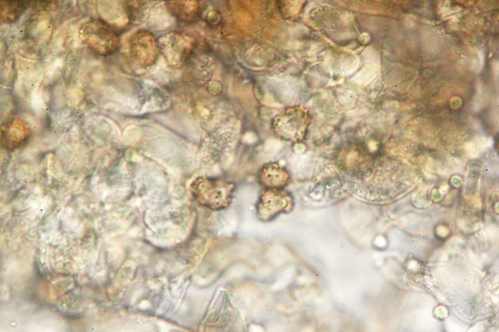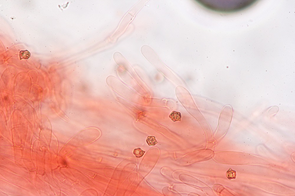 Ich konnte keine Pleurozystiden entdecken. Die Sporen reagieren auf Lugol nicht auffällig.