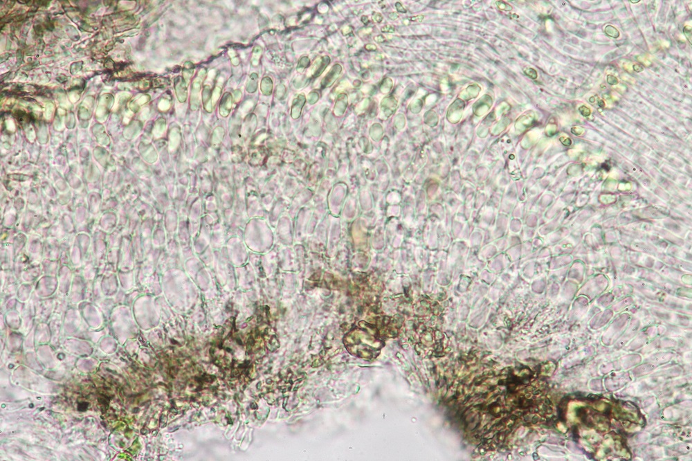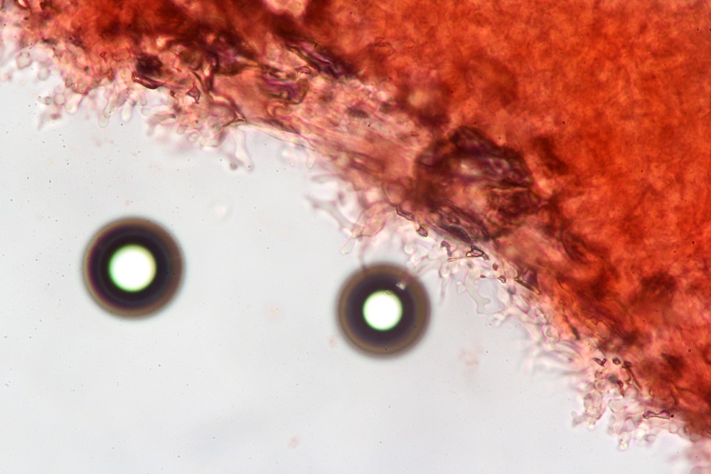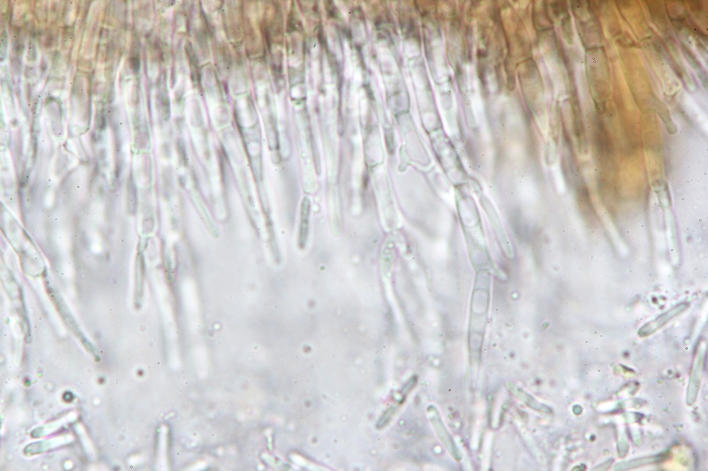 Ich habe gar keine Idee was es sein könnte. Die Sporen sind inamyloid. Es gibt keine Pleurozystiden, dafür gibt es komische Cheilozystiden mit "Näschen".