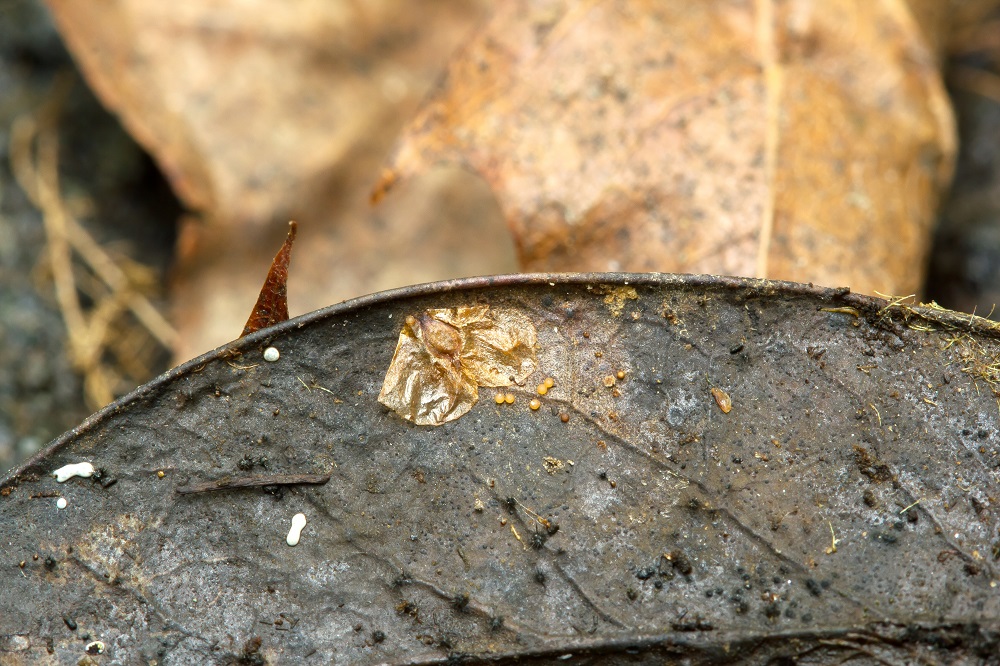 vorgestern (20.08.2020) habe ich ein Blatt von einem Ilex eingesammelt, um eigentlich orangenen Kügelchen zu untersuchen.