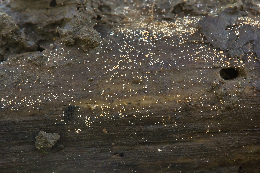Der rote Belag des Holzes auf dem ersten Bild hat allerdings nichts mit Annulusmagnus triseptatus zu tun, oder?