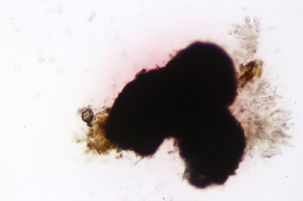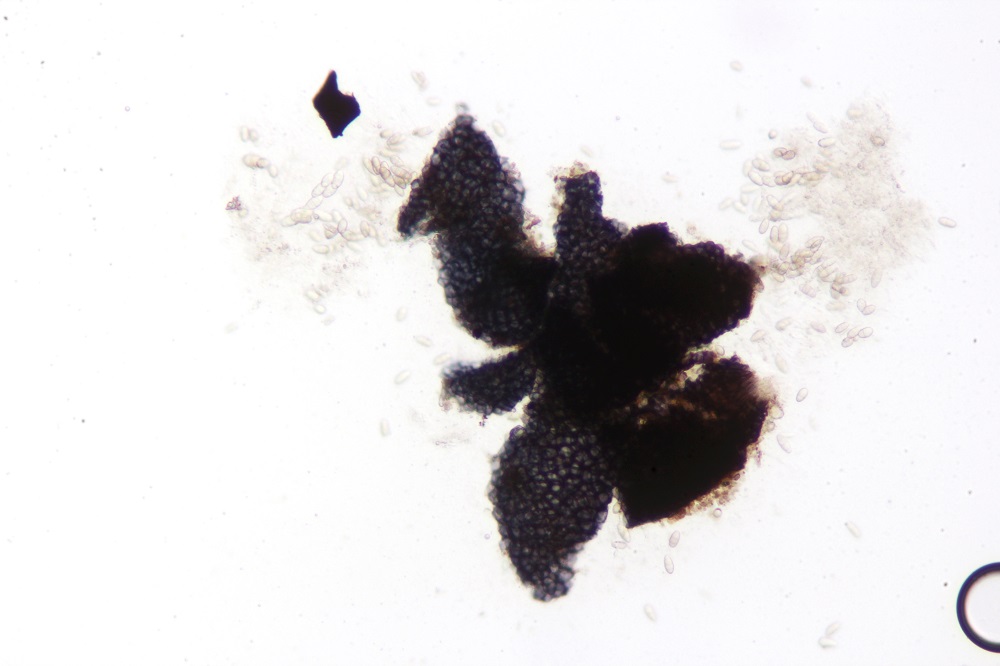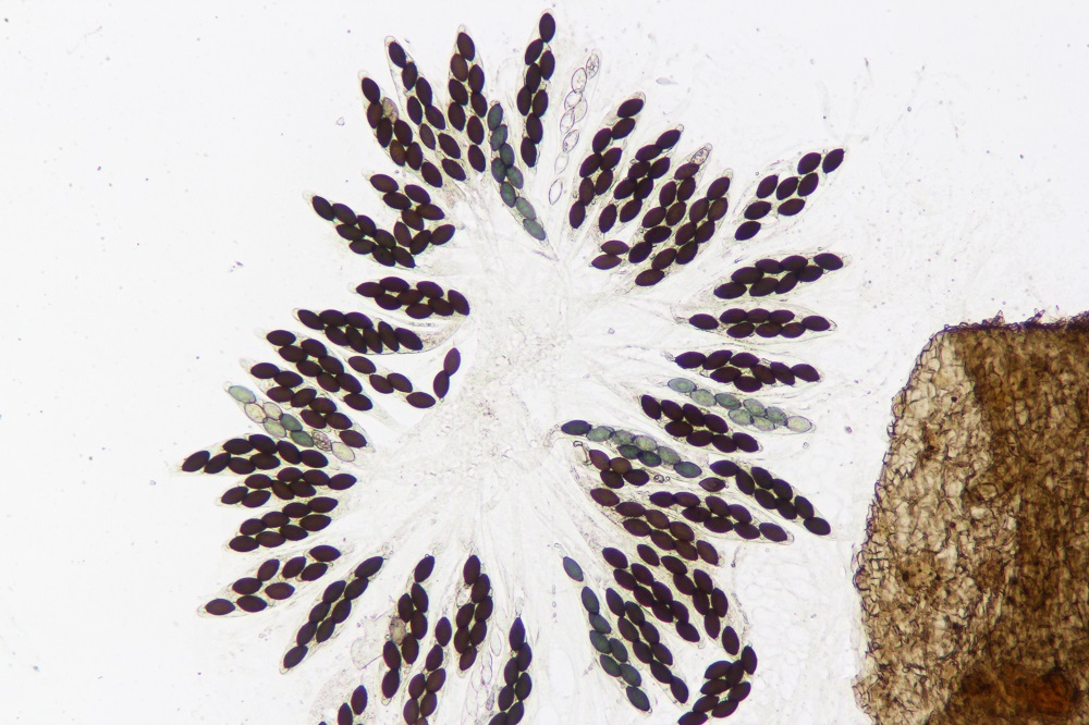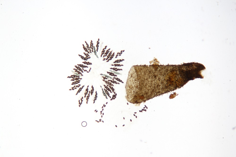 Sehr interessant ist das blaue Farbe des Fruchtkörpers, zumindest unter dem Mikroskop ;) .