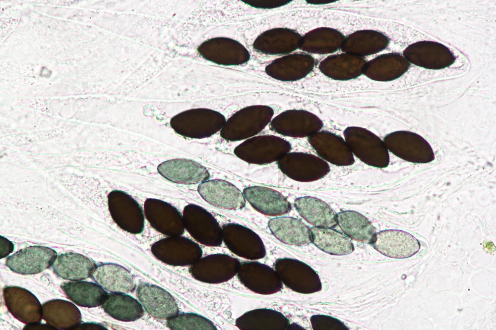 In den Asci waren die Sporen alle gleich breit, aber ich habe eine andere Aufsammlung auf Rehdung, wo dies der Fall ist.