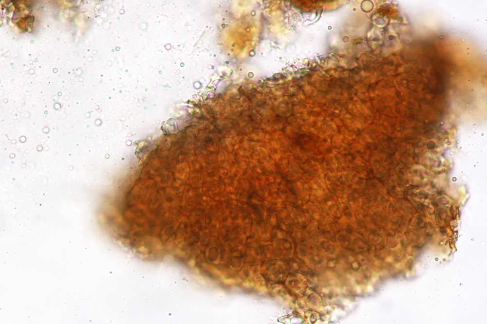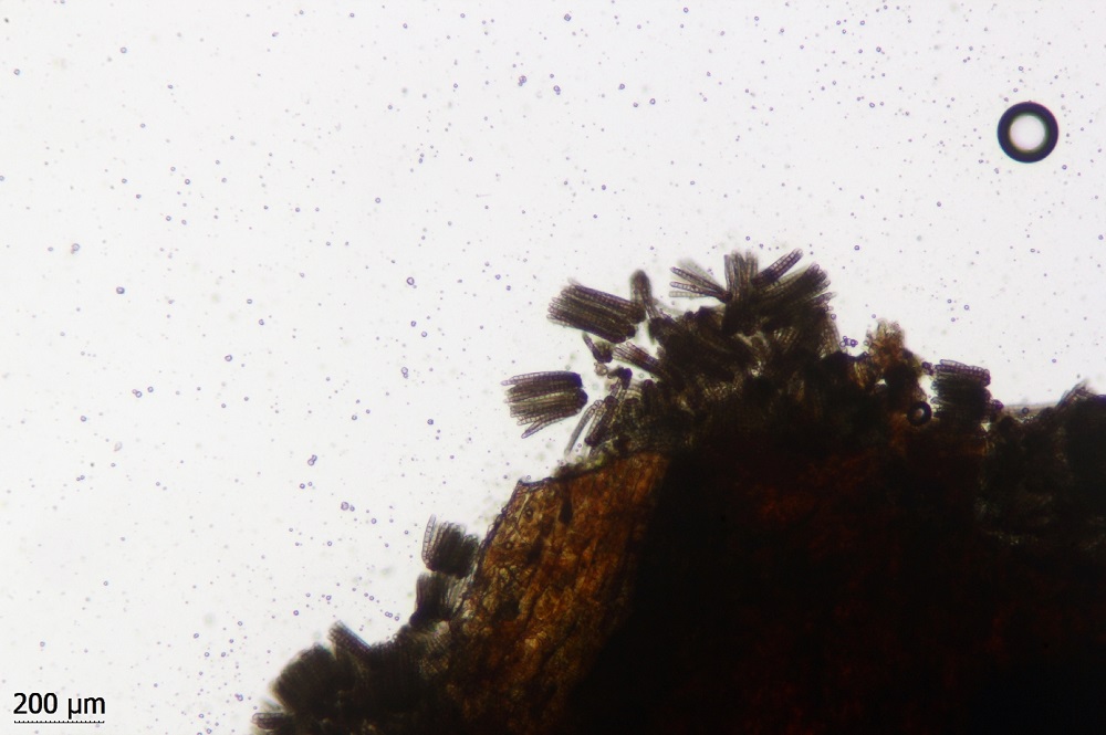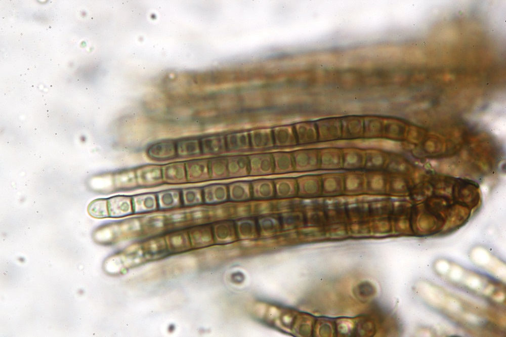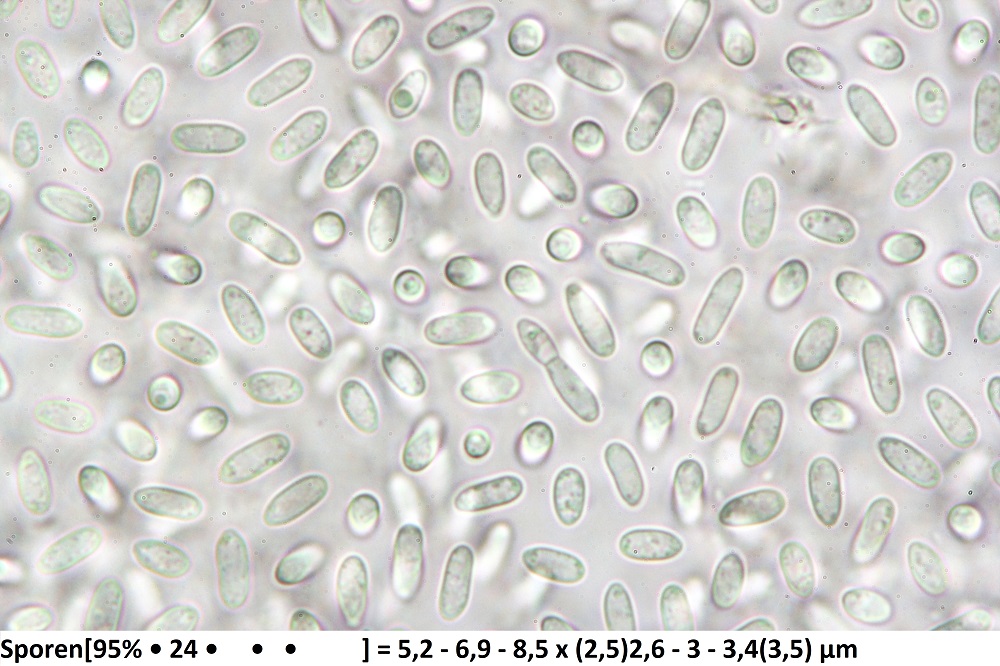 Auch die Sporen sind anders. Hier sind die Sporen deutlich eiförmig, wohingegen die Basidiopycnides-Funde schmaler sind.