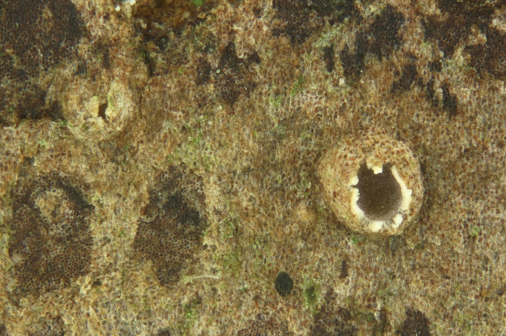 Die kleinen schwarzen Kügelchen haben sich Zuhause als Ascomycet entpuppt. Beim umdrehen des Blattes kam, dann ein zweiter Asco zum Vorschein, weshalb ich jetzt 2 unbekannte Ascomyceten habe.