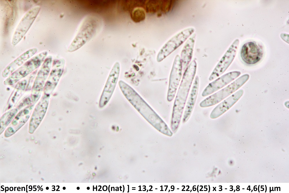 Auf jeden Fall ist bei mir die kleinste Spore 10,5 und die größte 12,5 lang, davon die Breite 4-4,5 Mikromter breit.
