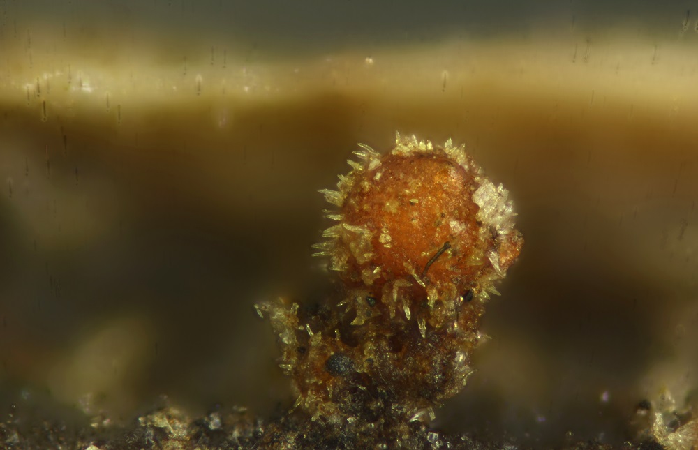 Gestern konnte ich winzig kleine gelb/orange Kügelchen auf dem Köttel entdecken, die sich dann unter dem Mikroskop nicht als Myxobakterium, wie ich zuerst vermutet hatte, sondern als eine Anamorphe entpuppt.