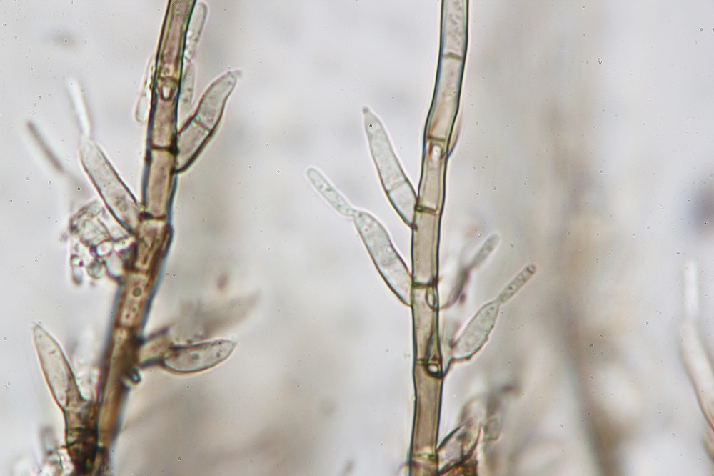 Schwer zu erkennen, aber manche Konidien sind einfach septiert