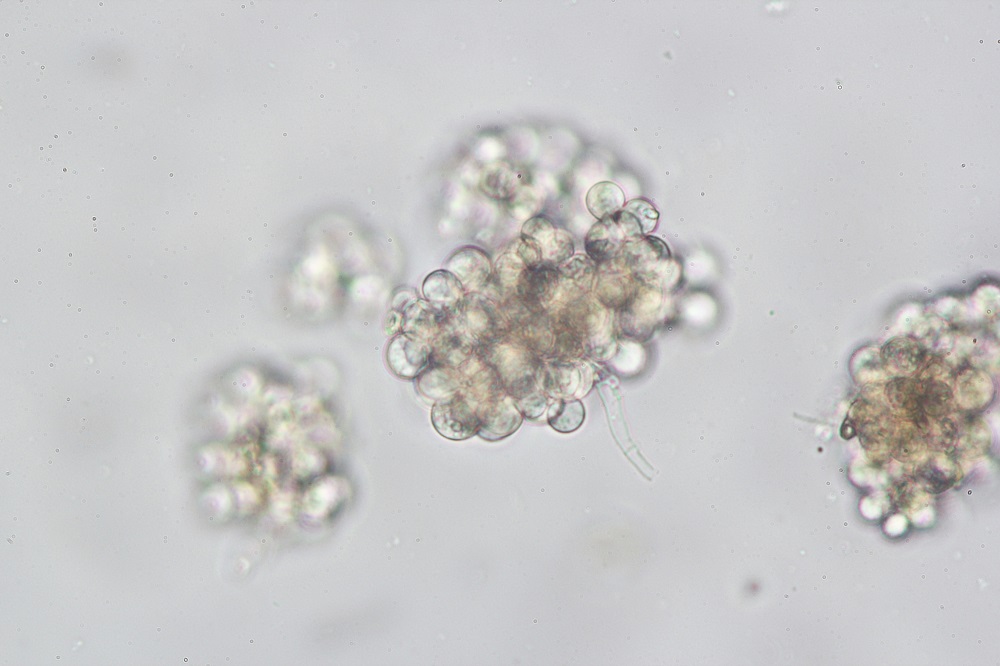 Das Echinobotryum bildet noch Sporen, die etwas größer, braun und warzig sind.