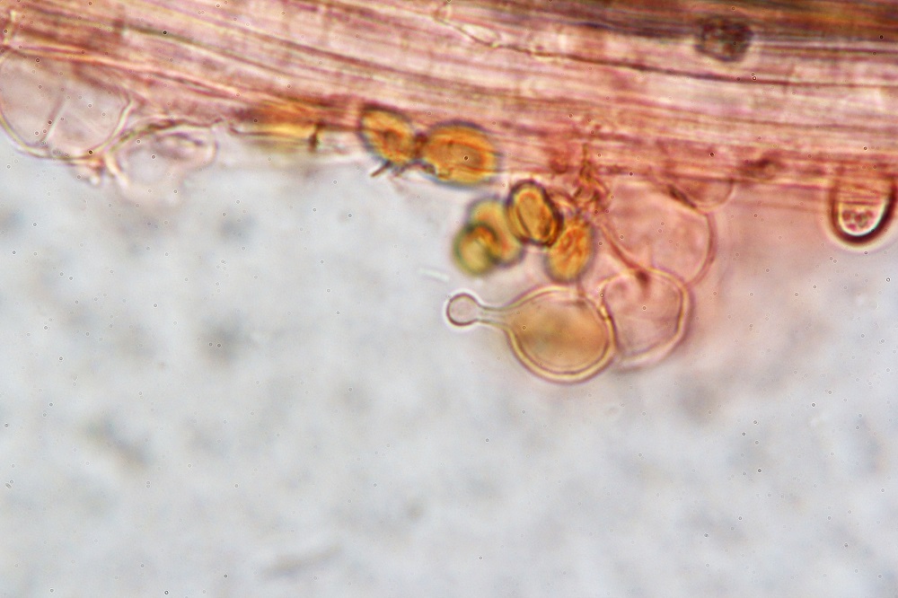 Leider konnte ich keine Merkmale der HDS herausarbeiten, weshalb ich nicht weiß ob es dort Pileozystiden gibt oder nicht.