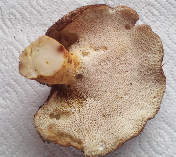 hab heute zum ersten Mal bewußt diesen Pilz in einem moosigen Mischwald im bayr. Wald gefunden. Stand in einer Böschung, der Stiel ist eigentlich länger gewesen. Hab zuerst an einen Maronenröhrling gedacht bis ich die schuppige Oberfläche und die großporige Unterseite gesehen habe.