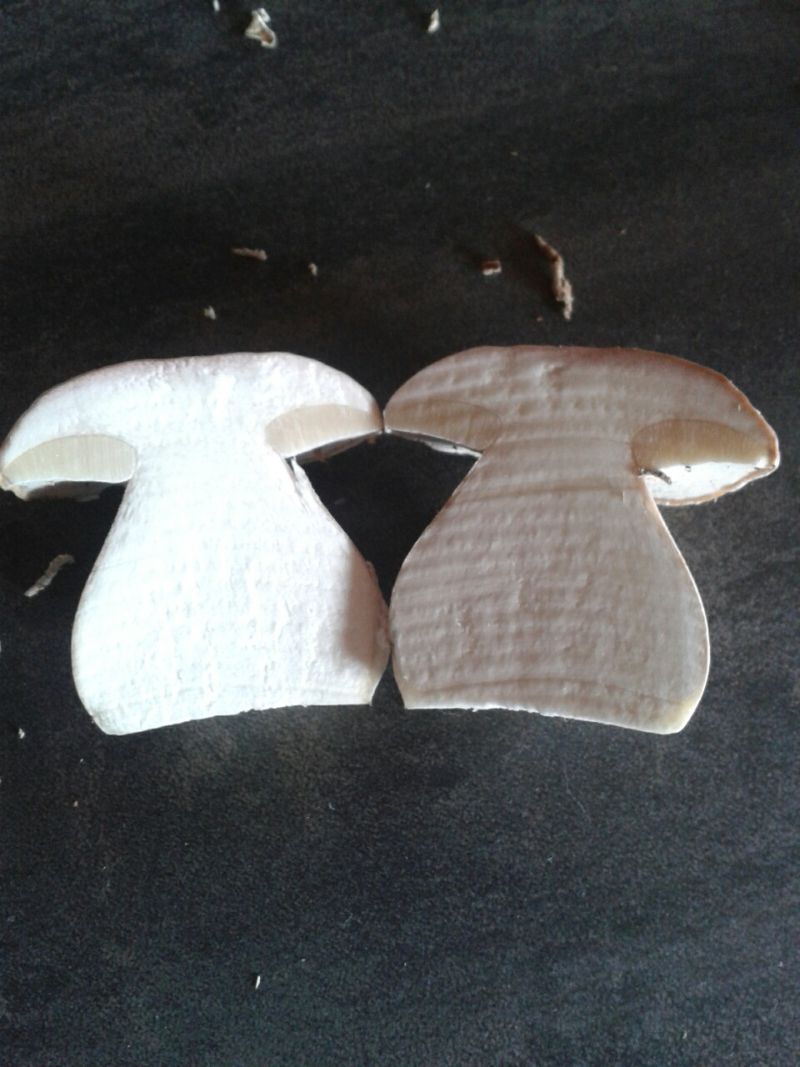 Ich habe ja den Pilz aufegschnitten, da hat sich mittlerweile nichts verfärbt.