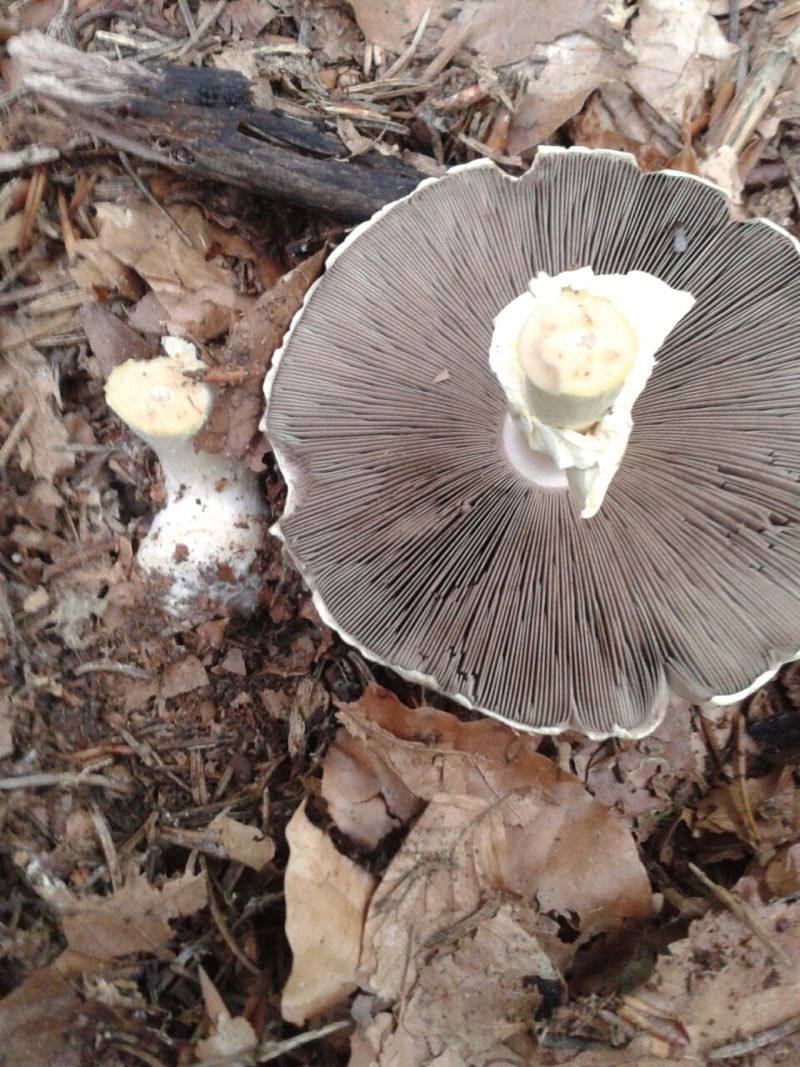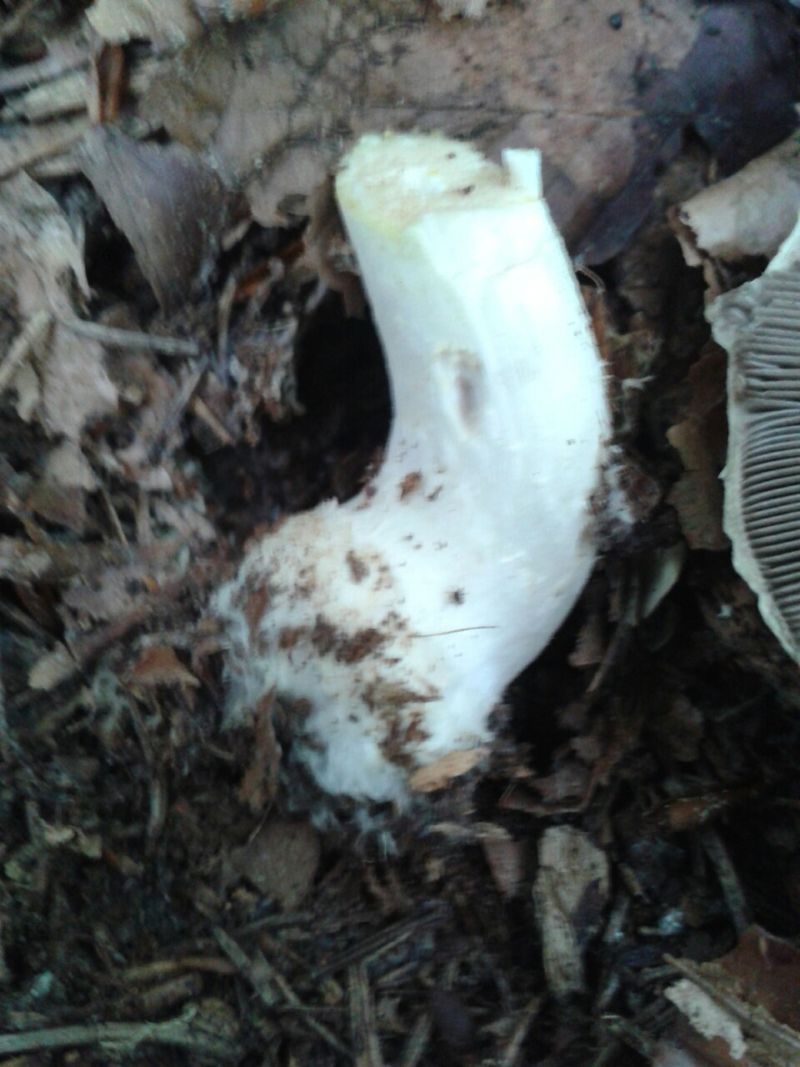Ein Ring ist nicht vorhanden, der Stiel ist zum Ende hin knollig und verfärbt sich an der Schnittstelle gelblich. über den Lamellen war eben diese dünne Schutzhülle, die ist aber zerfleddert.