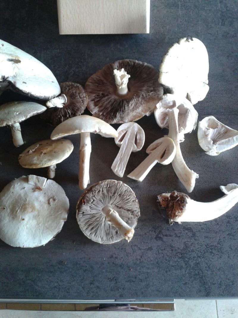 ich habe heute auf einer Weide ein paar Pilze gesammelt. Ich kenne diese Art von früher als ich mit meiner Oma gesammelt habe - würde sie allerdings jetzt gerne bestimmen. Ich meine dass es eine Champignonart ist.