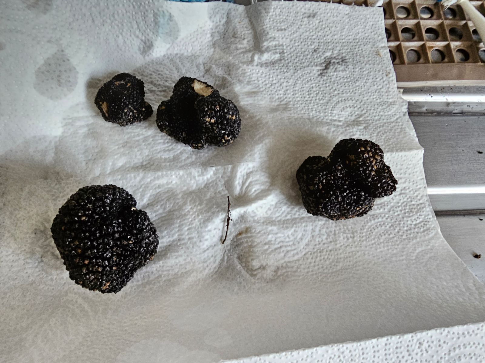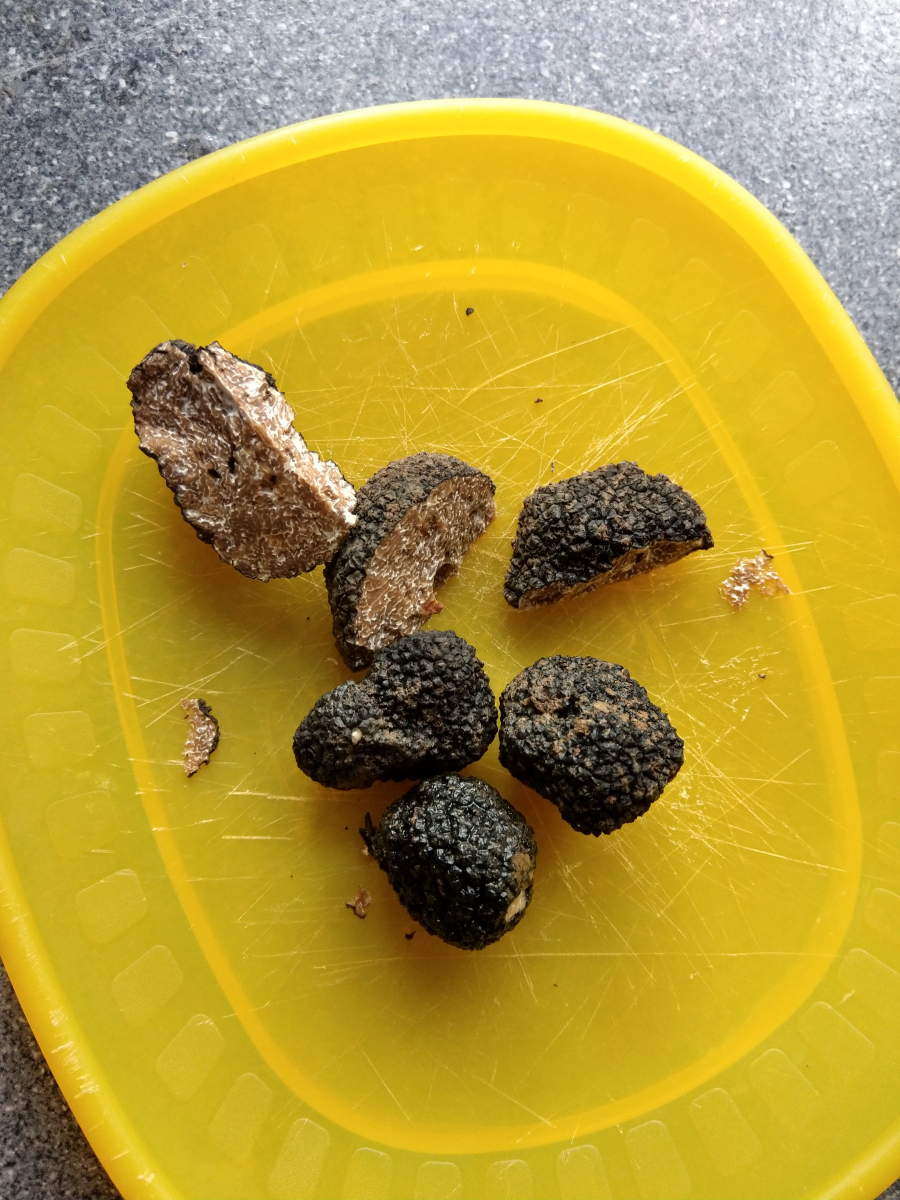 Seit letzem Jahr weis ich das in meinem Garten Trüffel wachsen. Leider habe ich dies erst im September bemerkt. Heute habe ich zufällig gesehen das zwei von ihnen doch sehr stark aus dem Boden heraus ragten und wollte die Funde nicht Vorenthalten ![]()