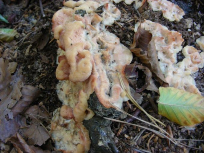 dieser Pilz wächst auf einem Buchenbaumstumpf. Könnt ihr dazu was sagen?