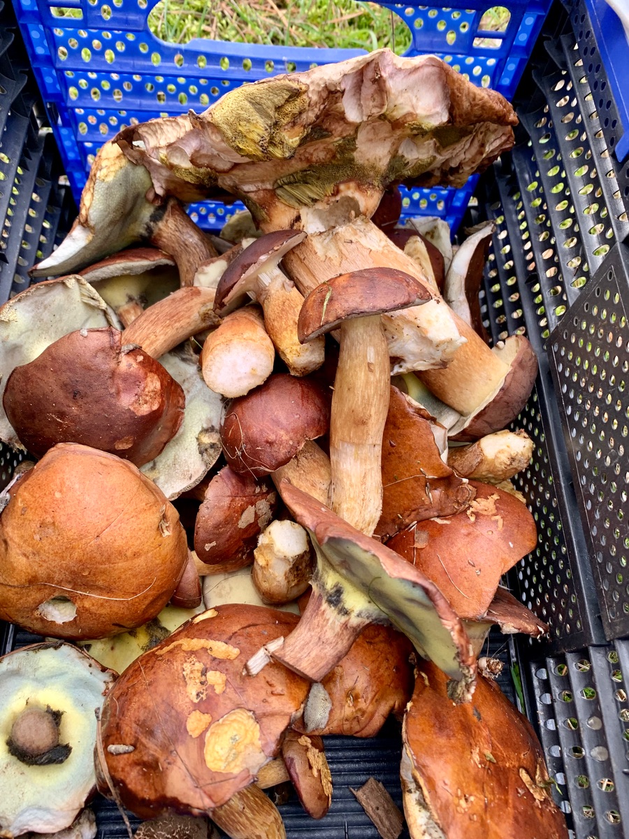 Nachtrag: Die Grunewald-Steinpilze waren fantastisch, vollkommen madenfrei, weiß und fest und landeten zusammen mit den anderen Artgenossen in einem Steinpilz-Risotto.