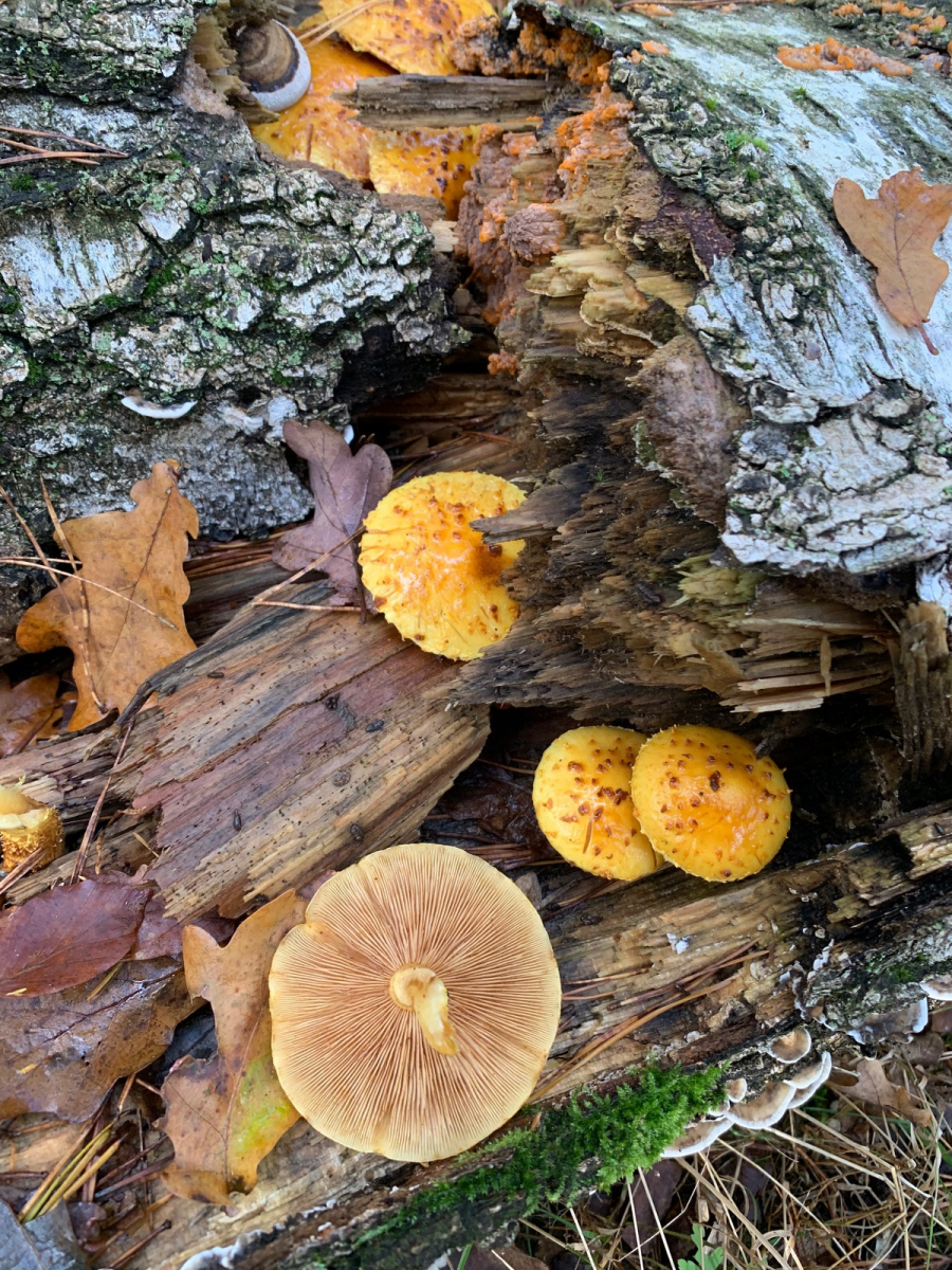 Hier kommt mein Saison-Abschlussbericht aus dem Grunewald: Für 0-8-15-Speisepilzsucher wie mich, ist die Saison beendet. Bis auf eine einzige Marone und eine Handvoll violette Lacktrichterlinge konnte ich leider nichts finden. Ansonsten gab es noch einige gelbe Knollenblätterpilze, gelbe (bittere) Täublinge, Fliegenpilze, Kartoffelboviste, Kremplinge, und den Rest kenne ich nicht namentlich.