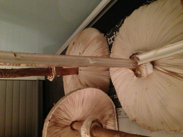 Ich hätte die Pilze in Scheiben geschnitten und aufhangen an einer Schnur.
