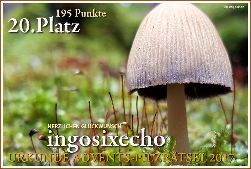 Die 200 hätte ich schon ganz gerne gehabt. Aber Platz 20 von ursprünglich 40 Startern empfinde ich erstmal als "hübsche Basis", ohne hier den Phal für den Startpilz vom 1.12. überstrapazieren zu wollen. Und nein - es sind nich die Brätzel, die mich um ein besseres Ergebnis gebracht haben. Letztendlich hat mich meine eigene Blindheit für die Details die Punkte gekostet. Und das bei den einfachen Sachen. So etwas nennt man Lehrgeld.
