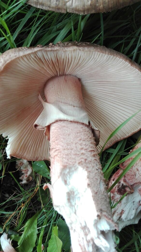 Mein Vater hat mir ein Bild von einem Pilz geschickt und meinte, es sei seiner Ansicht nach ein Champignon. Leider fehlt die Stielbasis auf dem Foto.