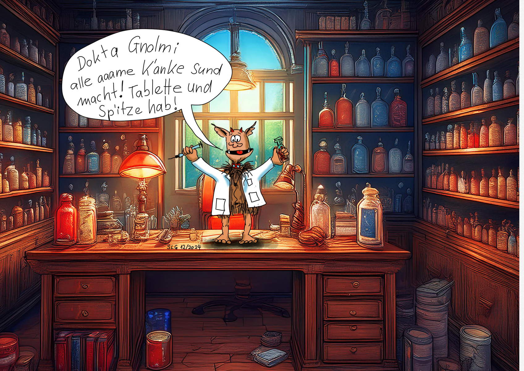 Und was glaubt Ihr, warum der Gnolm sich beim Anblick dieses Zahnarztes den Mund zuhält?!
