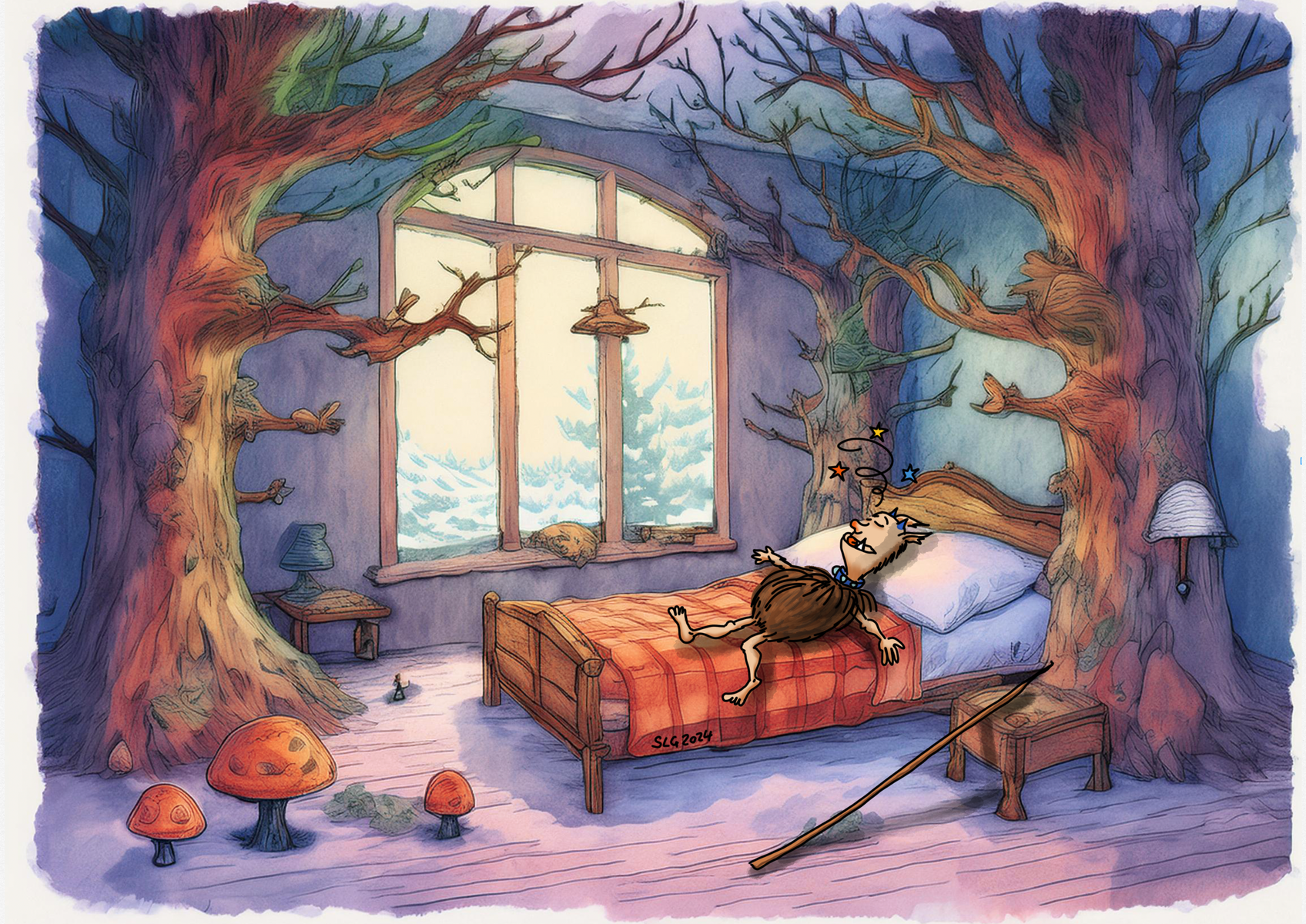 Also habe für unsere Gnolme, quasi als Basislager, in meinem Garten ein Häuschen und einen Wald angelegt. Hierhin können sie sich zurückziehen, wenn ihnen die Rätselei zu stressig wird, sie mal wieder schlafen müssen oder sonst etwas. Und alle, die noch nicht zu ihren Rätselgastgebern gereist sind, sind dort erst einmal gut aufgehoben, bevor sie mir mein Haus auseinandernehmen. (Aber natürlich gehen sie weiterhin bei mir ein und aus!)