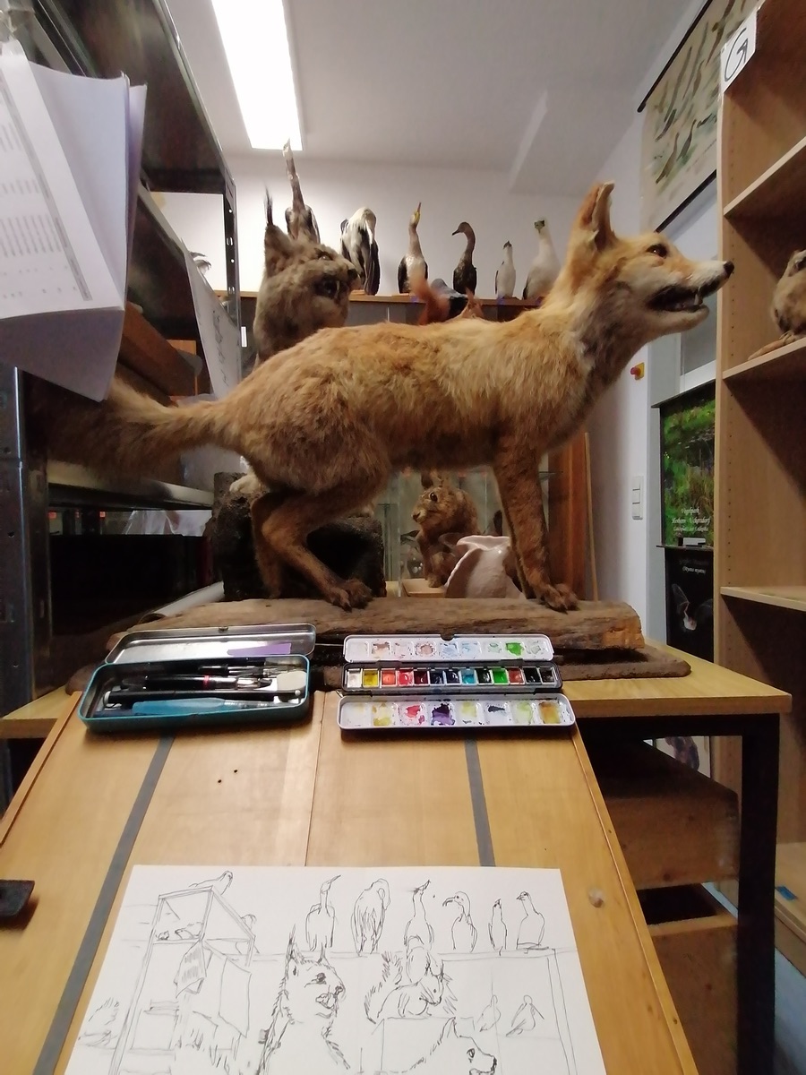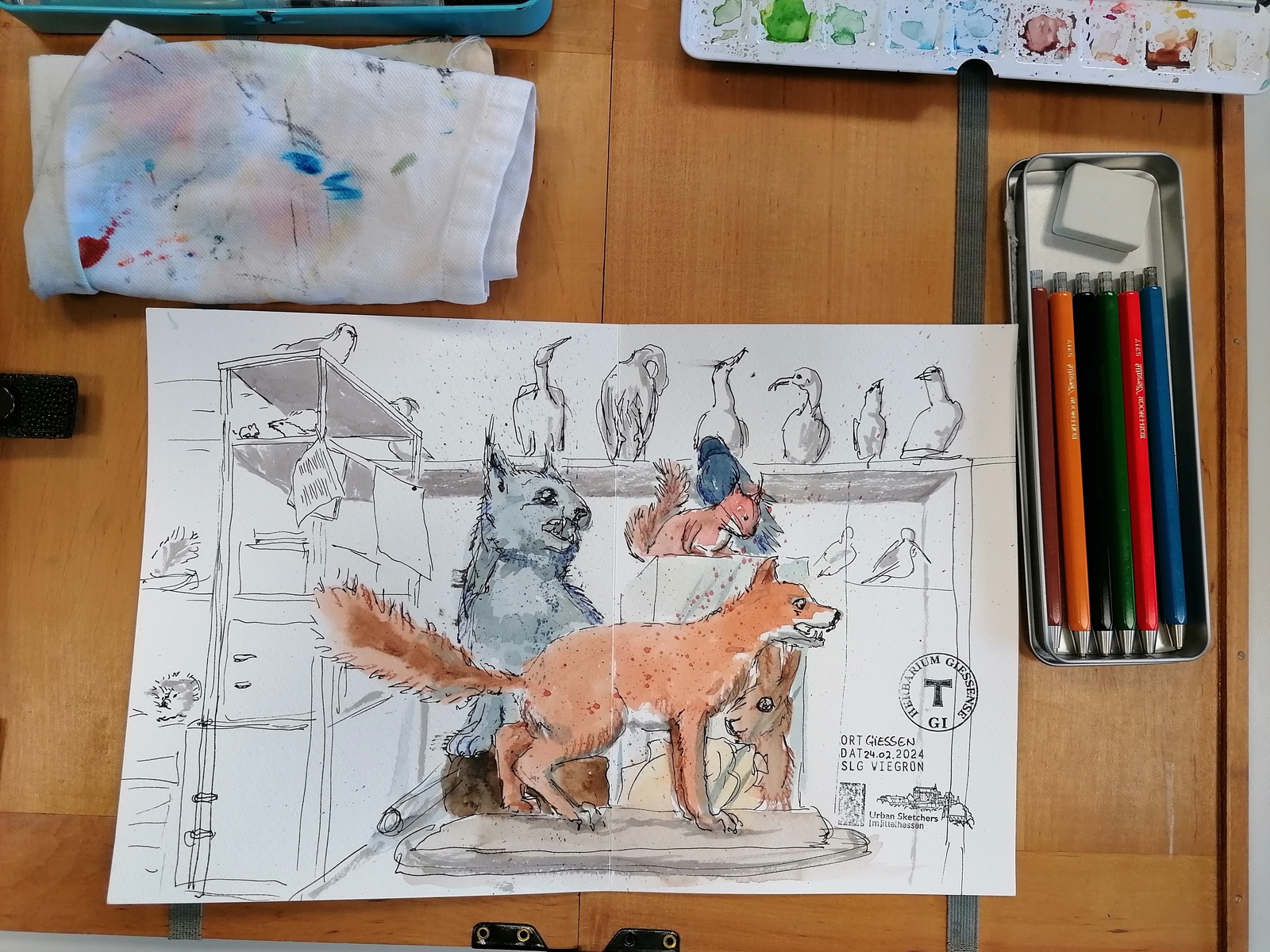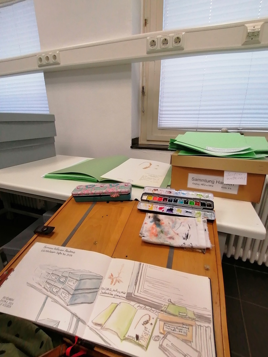 Heute waren wir mit unserer Urbansketchers-Gruppe in Gießen in der Hermann-Hoffmann-Akademie. Das war toll! wir durften alle Schubladen der Sammlung öffnen, Belege und Exponate entnehmen (unter der Voraussetzung, das wir sie natürlich wieder zurückstellten). #uskmittelhessen #wiegruen