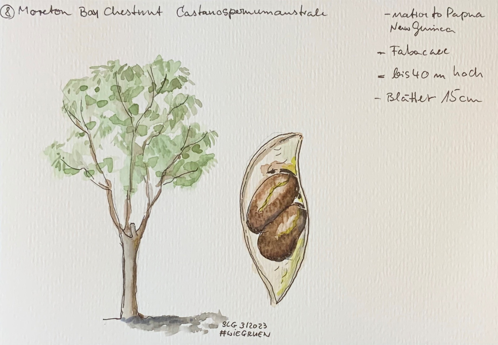 Das hat Spaß gemacht! Ich habe nur Nr. 6 verpasst, da ich nach drinnen wechseln musste, auf der Terrasse wurde es zu kalt zum zeichnen. Für jeden Baum hatten wir 15 Minuten, um ihn zu skizzieren und dabei die Essenz seines Erscheinungsbildes zu erfassen.