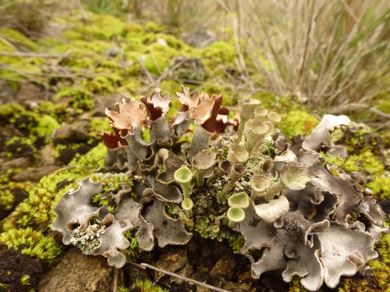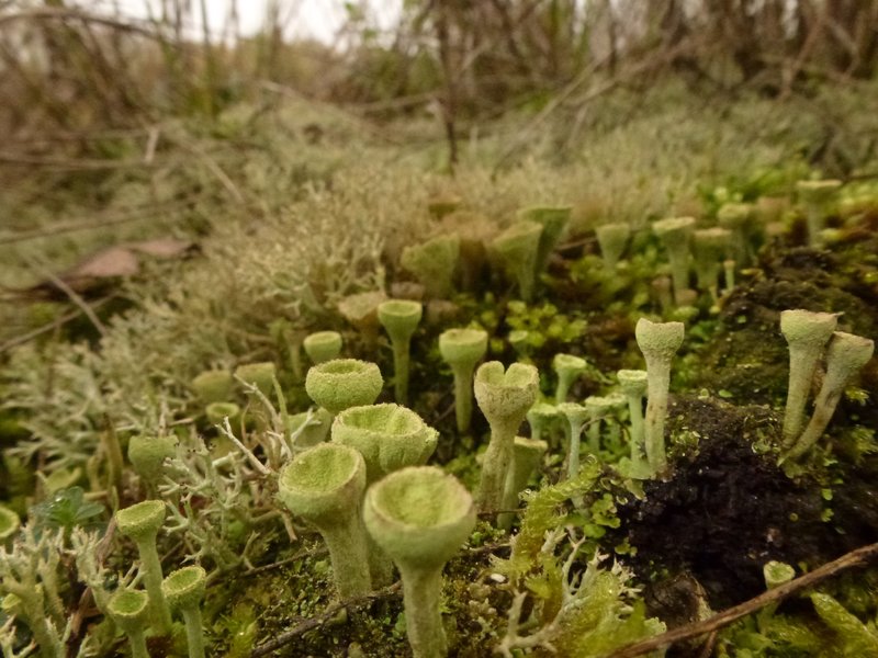 16. Schildflechte, Peltigera spec. mit Trompetenflechten