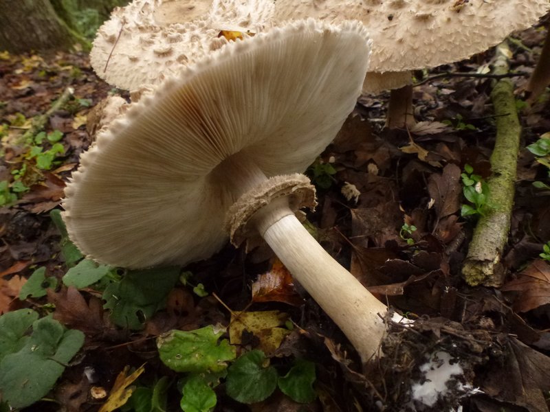 2. Direkt daneben standen diese Macrolepiota, im Anschnitt rötend