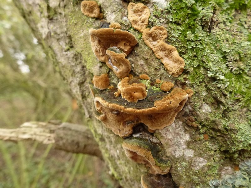 4. Auf dem weiteren Weg an Weide fanden sich Phellinus conchatus, Muschelförmiger Feuerschwamm