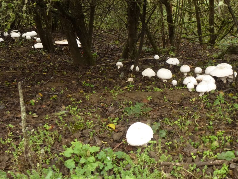3. Und wiederum einen Meter daneben im Gebüsch diese hübschen Kleinsporigen Blutegerlinge, Agaricus sylvaticus